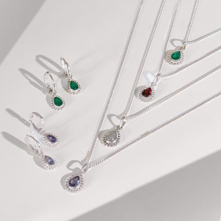 This January Birthstone Sterling Silver Necklace by Charlotte's Web Jewellery is a modern and heartfelt heirloom, celebrating the wearer's unique story. The deep red tones of the garnet, the birthstone for January, are believed to inspire love and strength, making it a perfect symbol for new beginnings. The garnet is set in a delicate, pear-shaped Rawa setting, adding a touch of classic sophistication. Handmade in India, this piece is a beautiful blend of traditional craftsmanship and contemporary design, creating a meaningful piece that can be treasured forever.