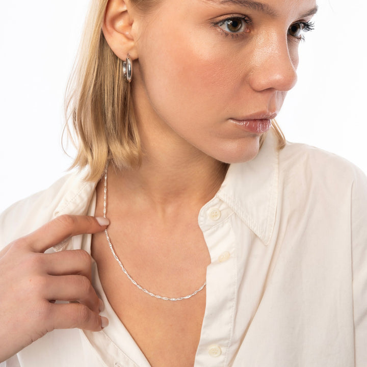 These Chunky Hoop Earrings by Spero London are a bold and statement-making accessory. Their shiny silver finish and oversized design will be sure to show off your unique fashion sense. These hoops are perfect for those who want to stand out from the crowd with a confident and stylish look.
