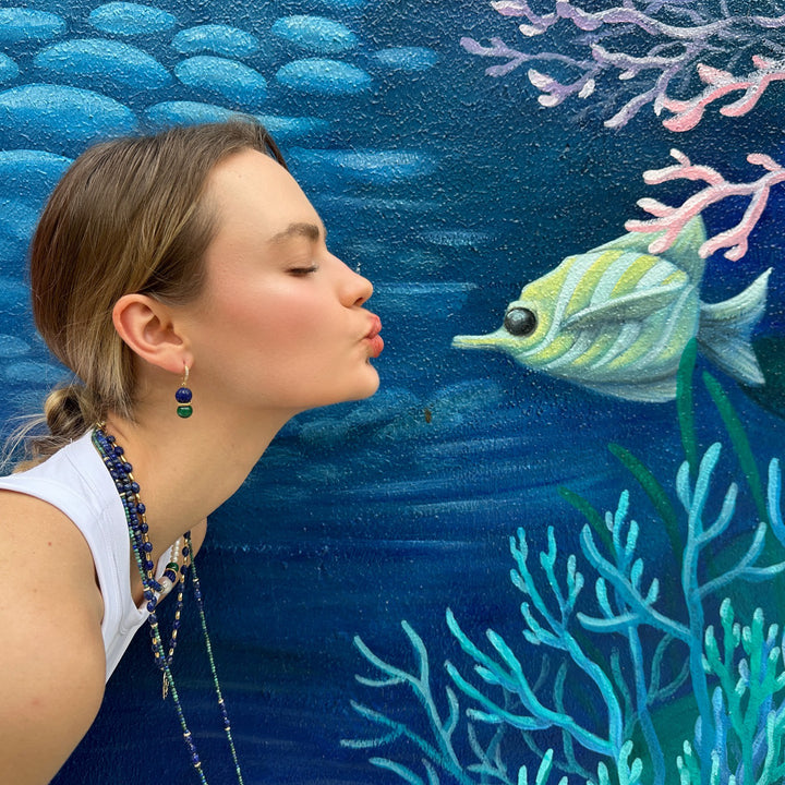 Blue Lapis With Green Malachite Color Matching Earrings