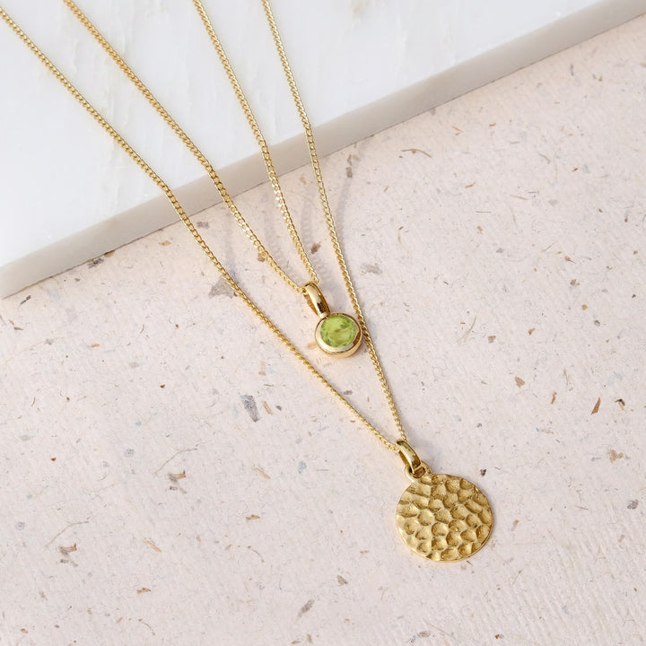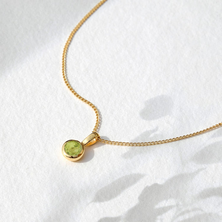 This August Birthstone Gold Vermeil Necklace - Peridot by Charlotte's Web Jewellery radiates strength, prosperity, and individuality. Set with a vibrant peridot known as the “Evening Emerald,” the gemstone glows with a distinctive lime-green hue that has been cherished for centuries. A meaningful symbol of peace and good fortune, this necklace makes an ideal birthday gift or personal talisman, celebrating both elegance and energy.