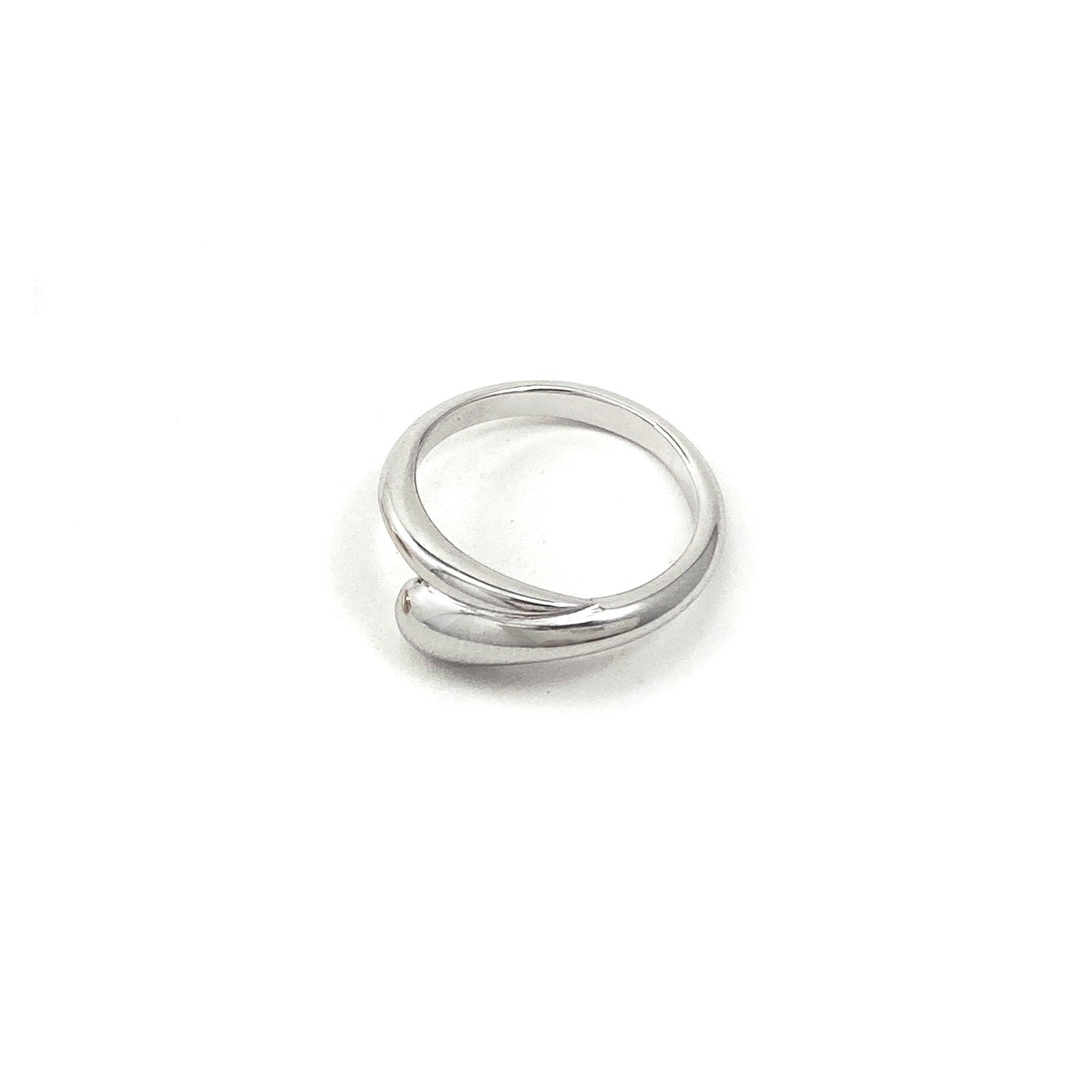 Streams rolling into rivers and lakes; bountiful energy being directed towards its next resting place. Emulating this flow & resembling moving water, the Droplet Ring curves delicately around the finger. She celebrates the ease and beauty in which nature exists. Made from rhodium plating over brass, hypoallergenic, hand-cast & polished forms.