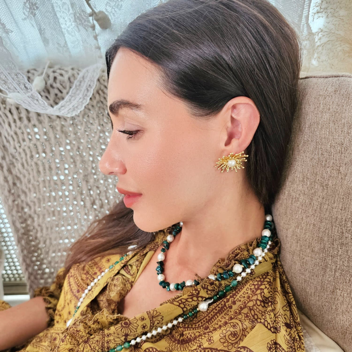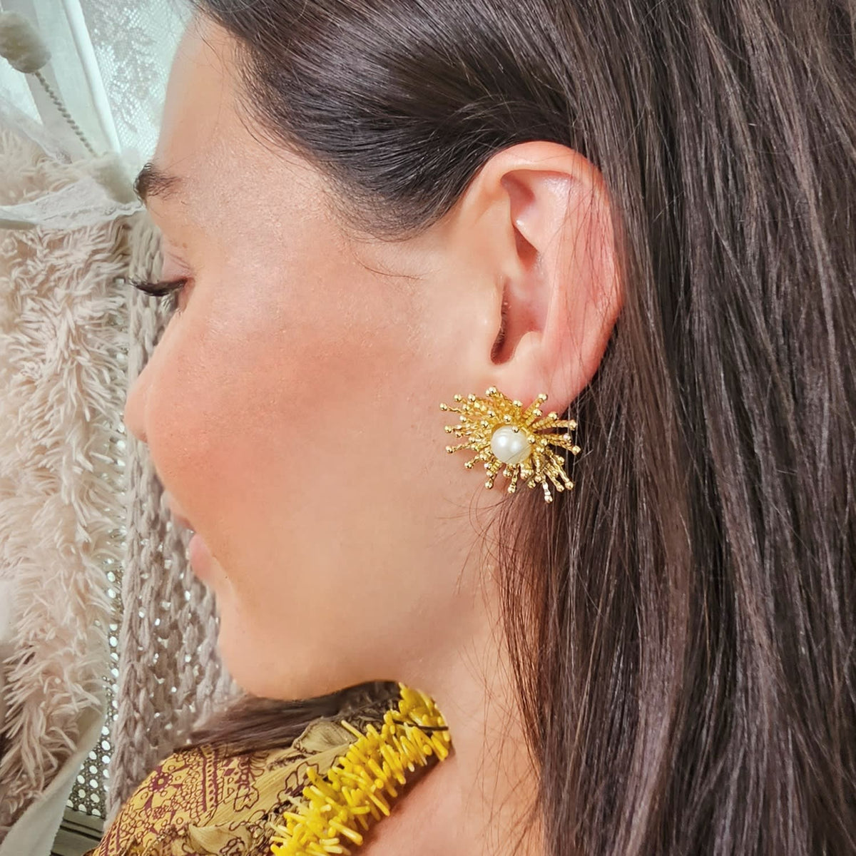 Flower Setting Pearls Stud Earrings | Elegant Floral Design For Every Occasion