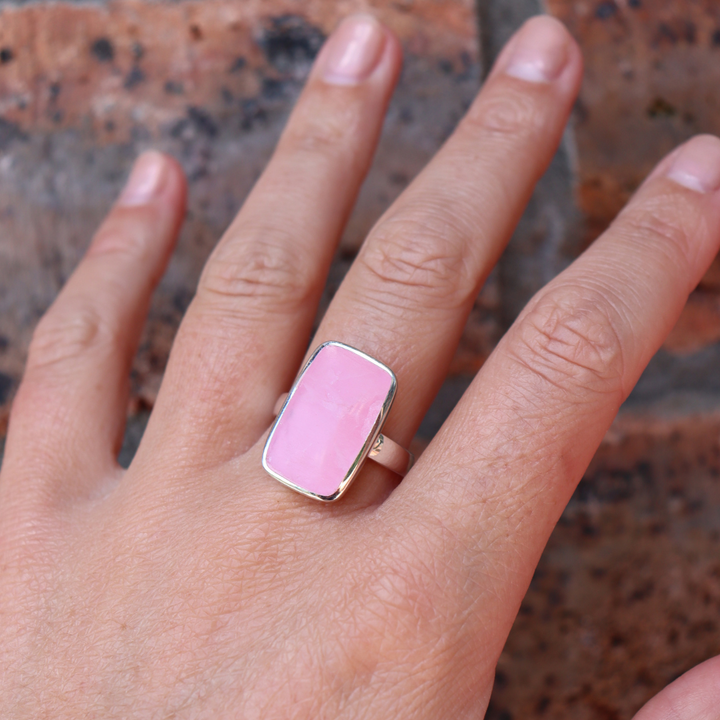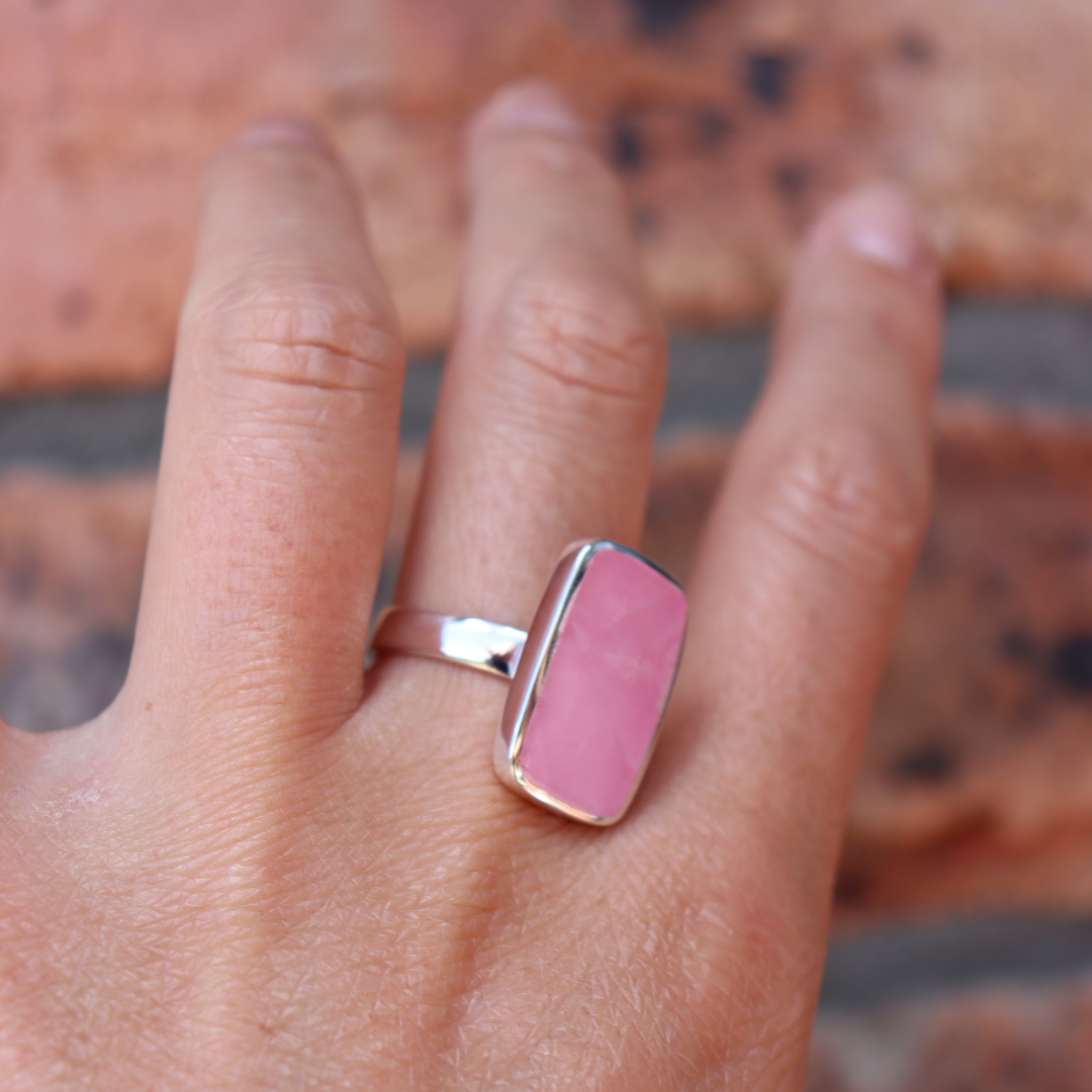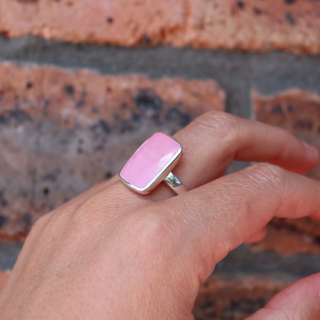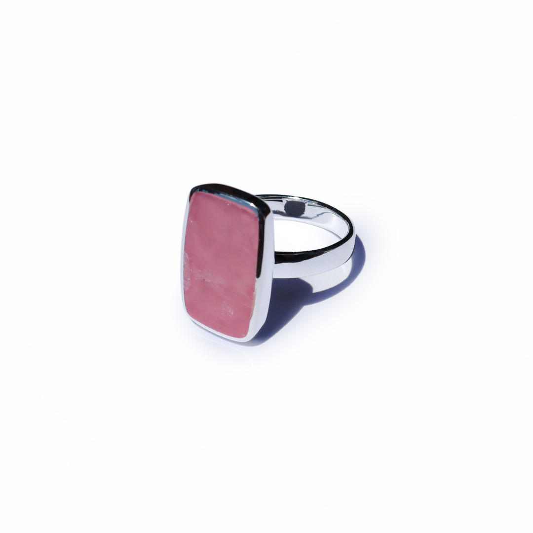 The beautiful, semi-precious rose quartz is the focus of this bold & beautiful ring. A rectangle cut of the natural rose quartz stone sits in a sterling silver case and band. This ring was designed to stand out as a timeless piece of jewellery. Match with your choice of jewellery from our La Stele collection.