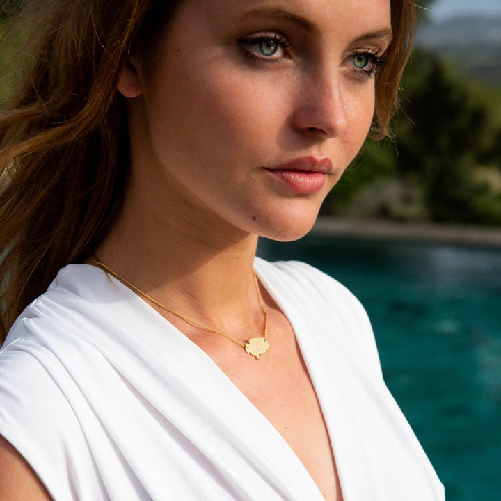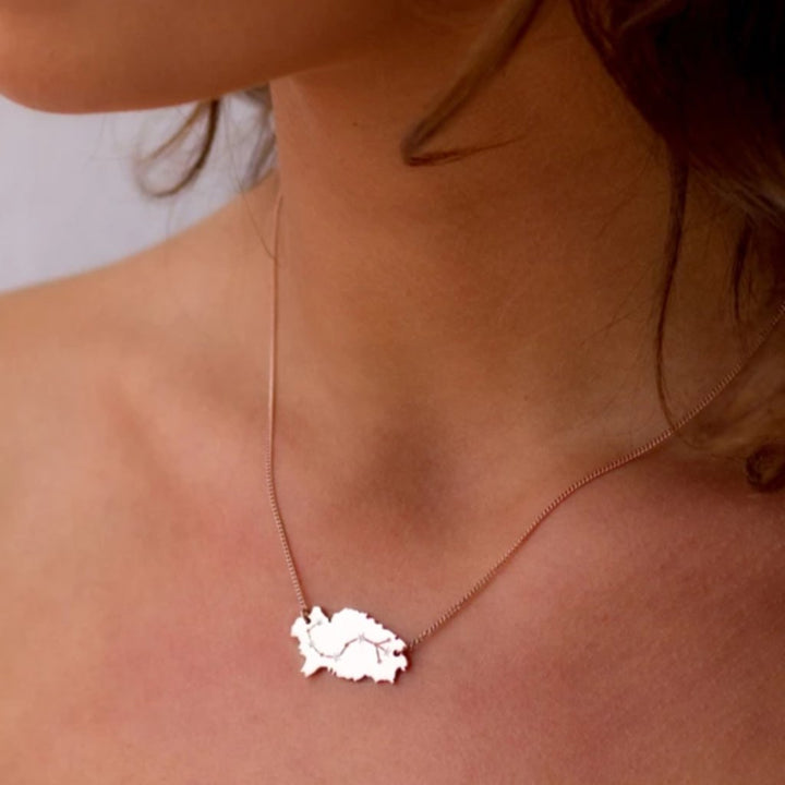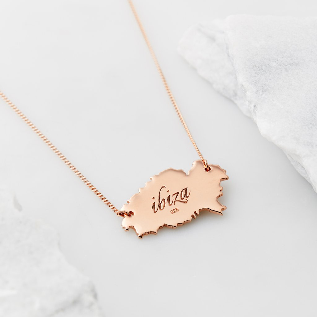 This Ibiza Constellation Rose Gold Vermeil Necklace by Charlotte’s Web Jewellery captures the mystical energy of Ibiza. Shaped as the island and adorned with Scorpio’s constellation in cubic zirconia, it shines as a sparkling memento of creativity, transformation, and freedom.