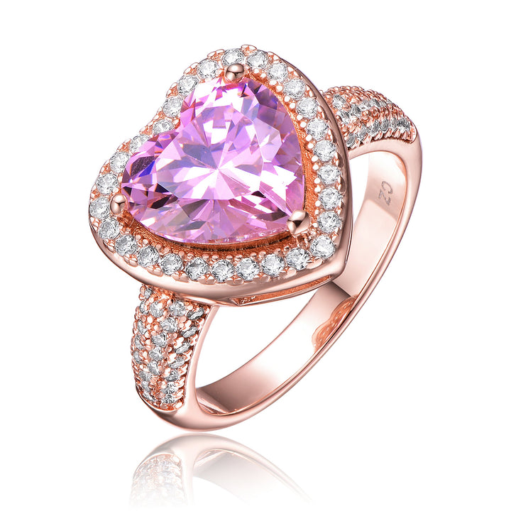 Sterling Silver Rose Plated Pink Cubic Zirconia Heart Modern Ring