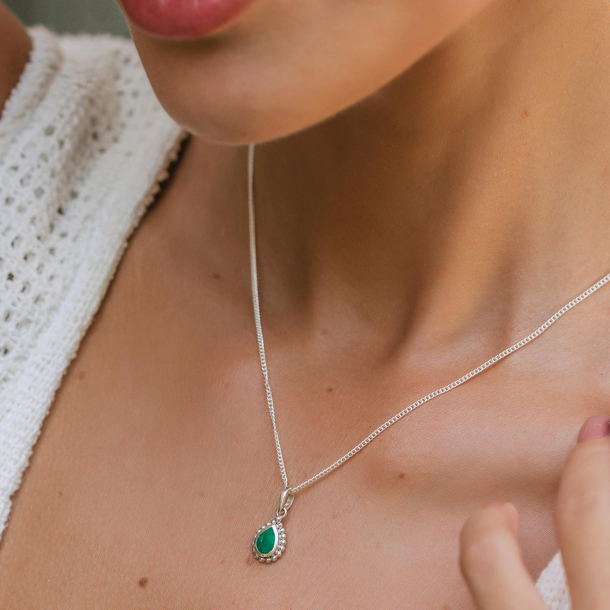 May Birthstone Sterling Silver Necklace - Green Onyx