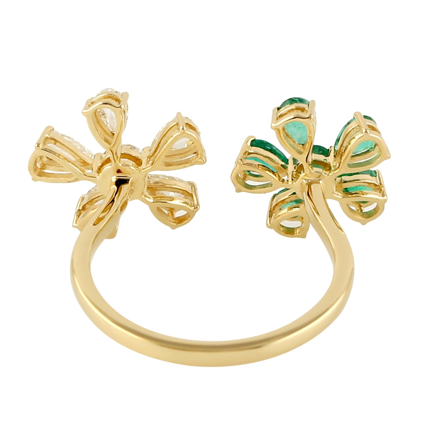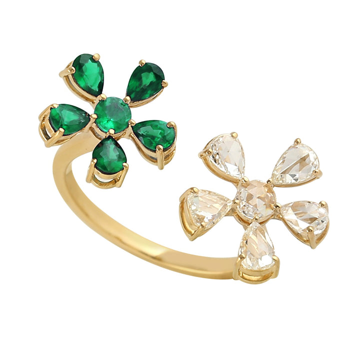 8 K Yellow Gold Between The Finger Flower Emerald Diamond Ring Jewelry