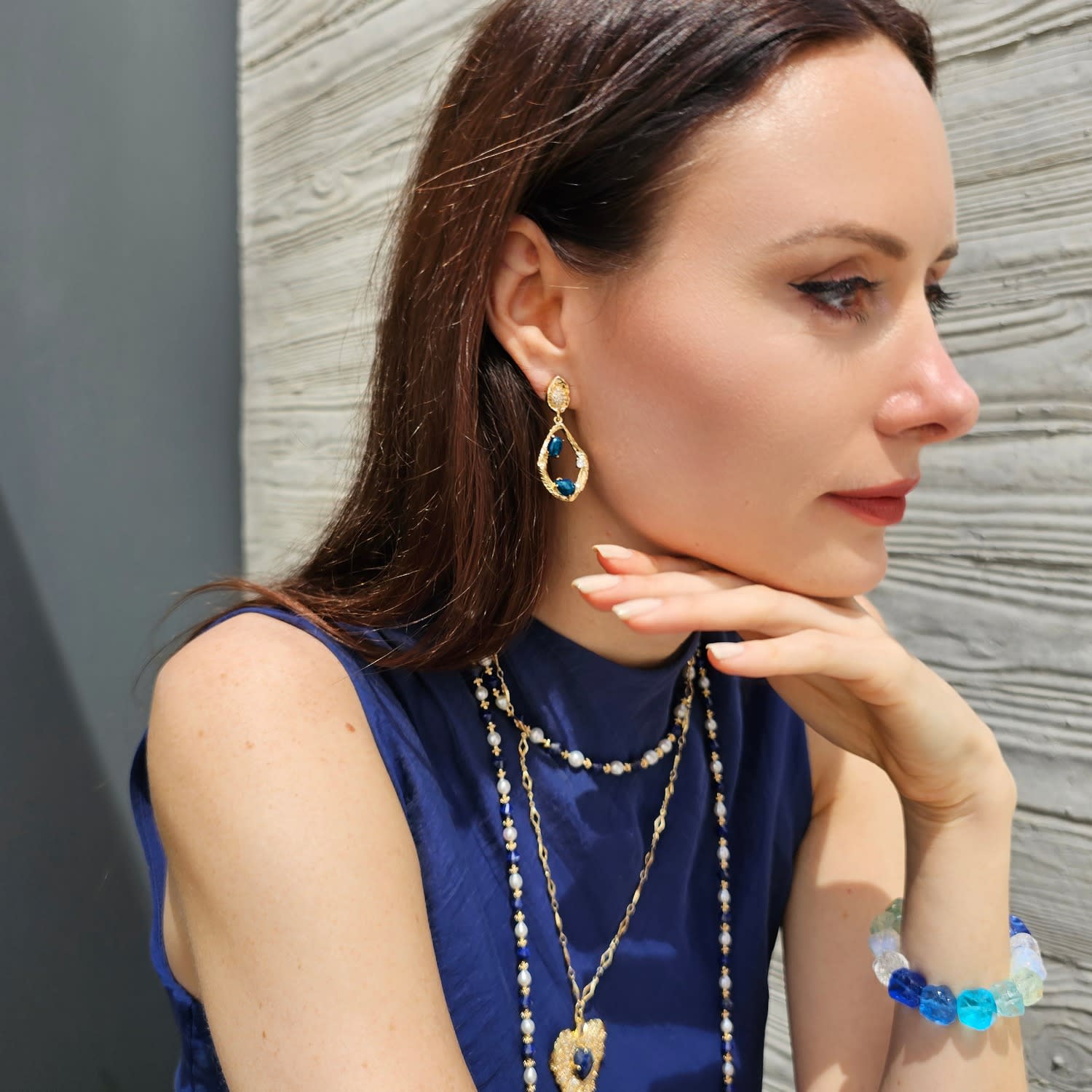 These earrings are crafted with high-quality materials and feature vibrant apatite stones with sparkling accents.