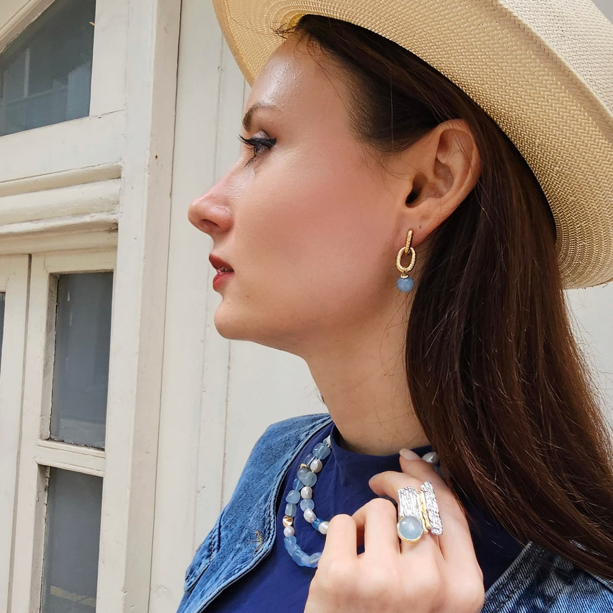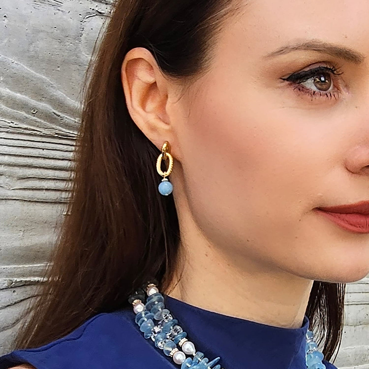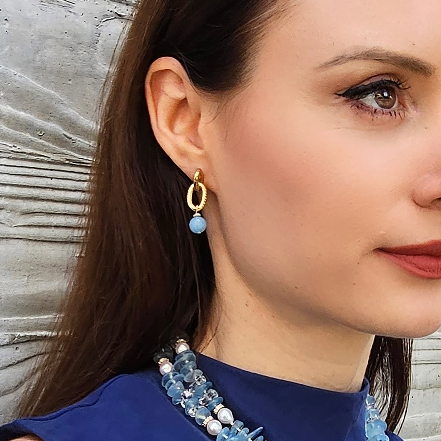 These dangle earrings are crafted from aquamarine stones. They are lightweight.