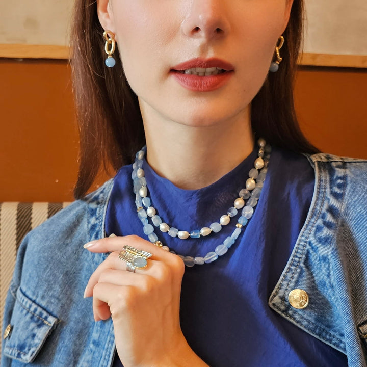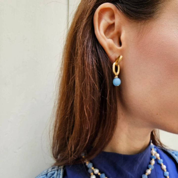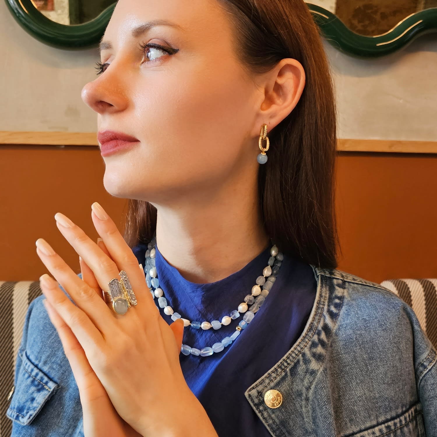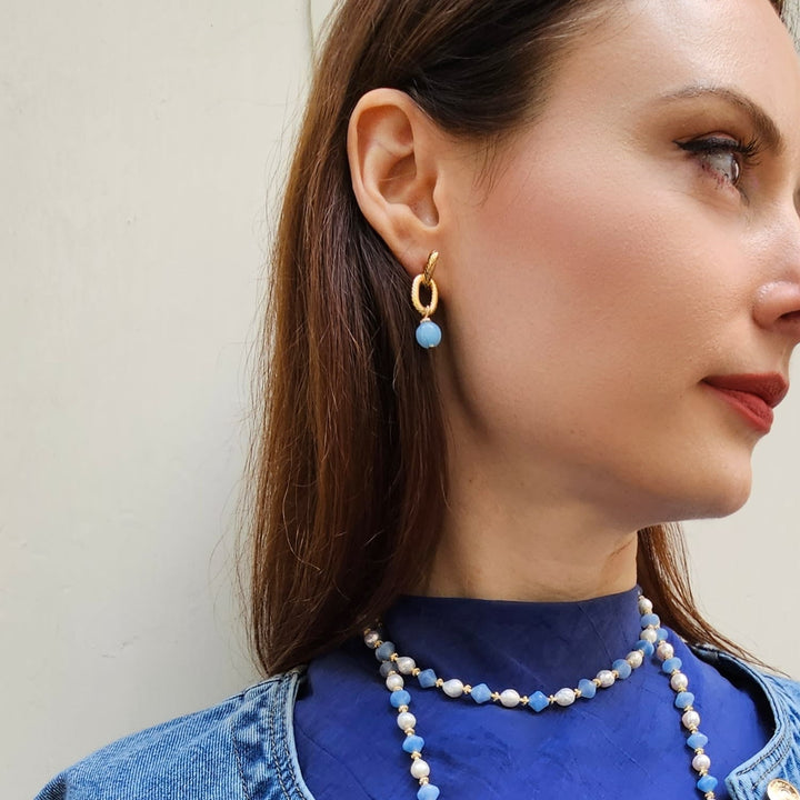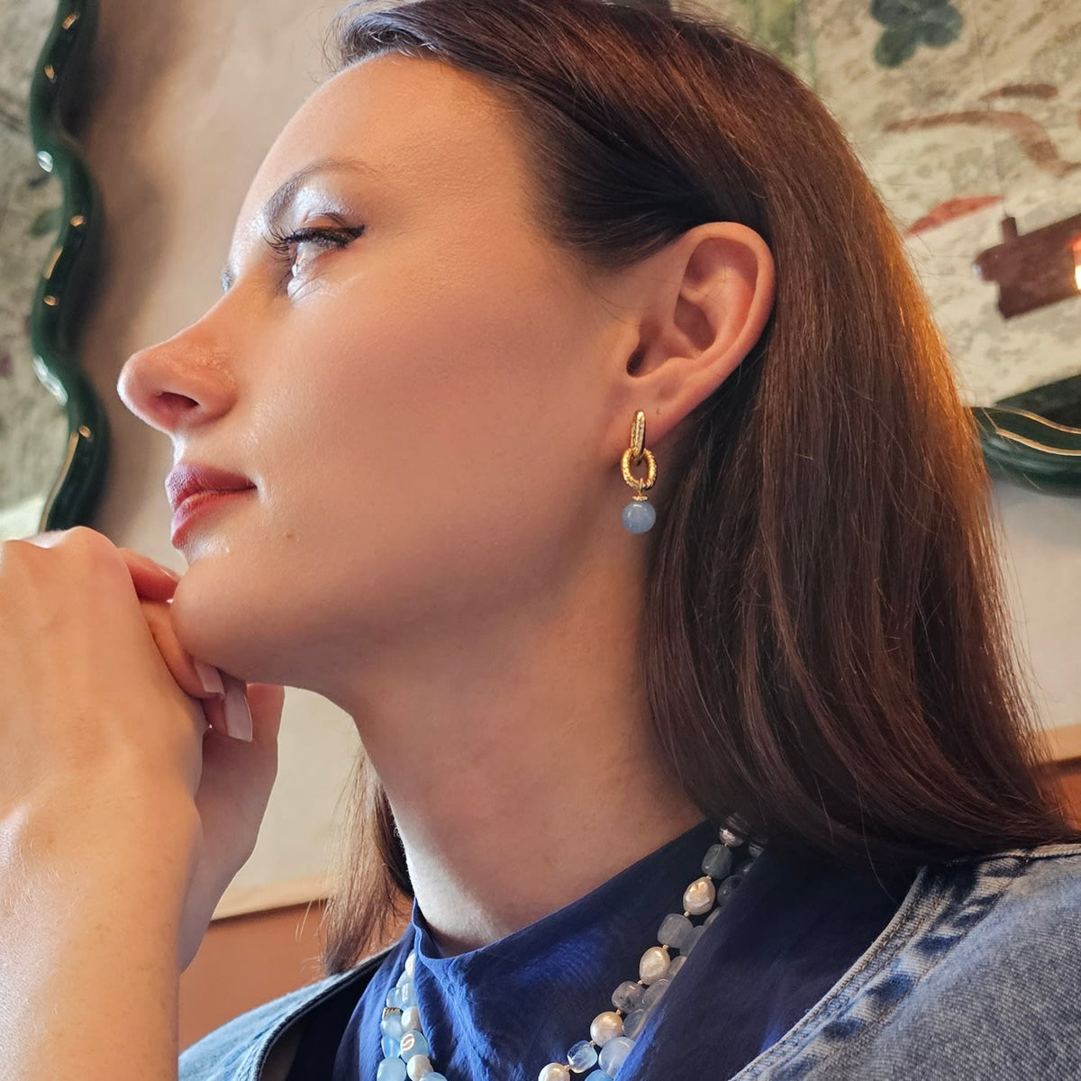 These dangle earrings are crafted from aquamarine stones. They are lightweight.