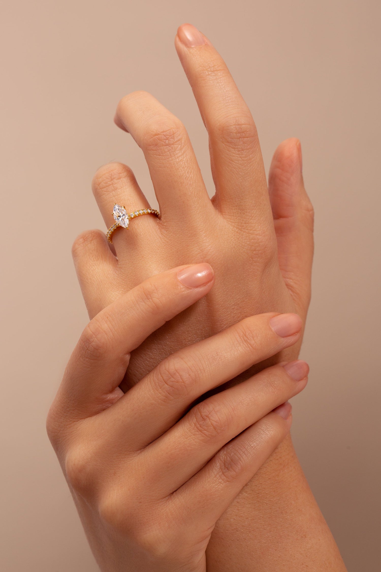 Maeve Yellow Gold Marquise Hidden Halo Lab Grown Diamond Ring