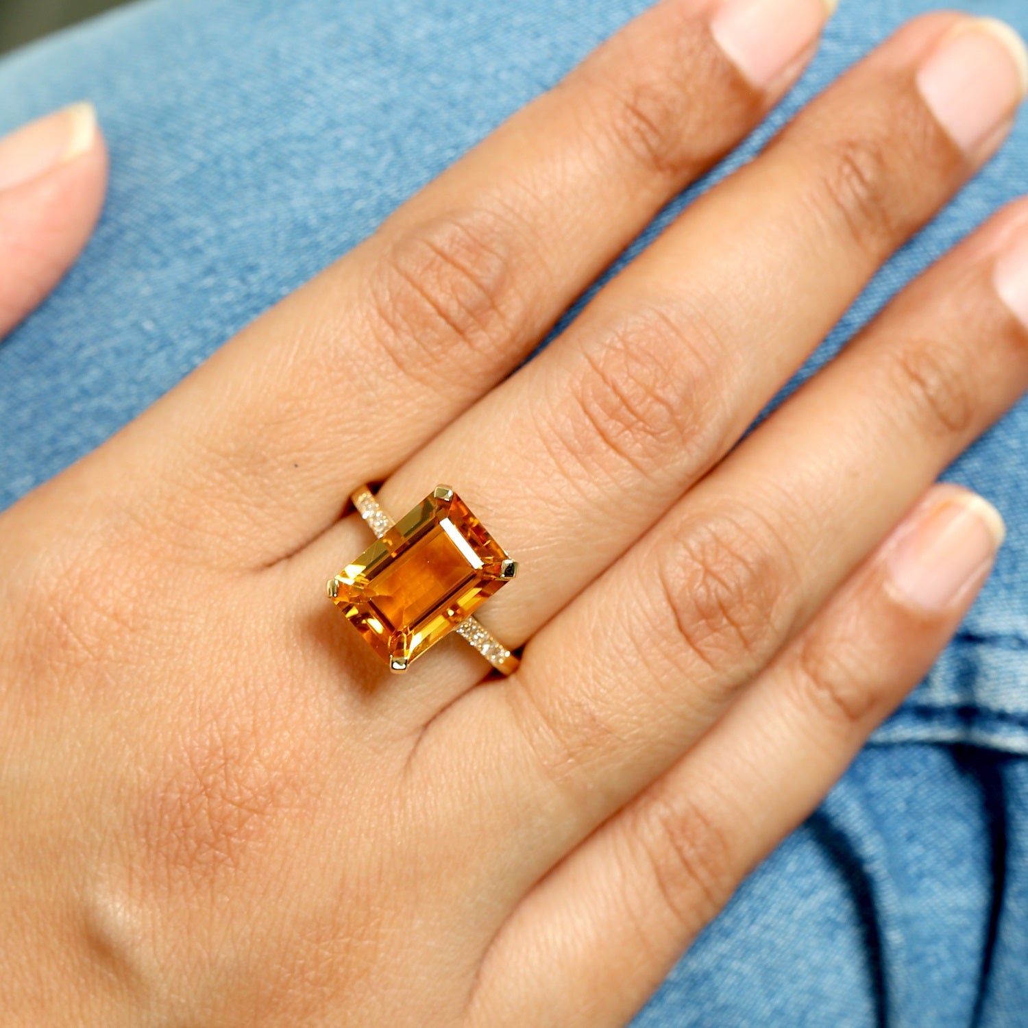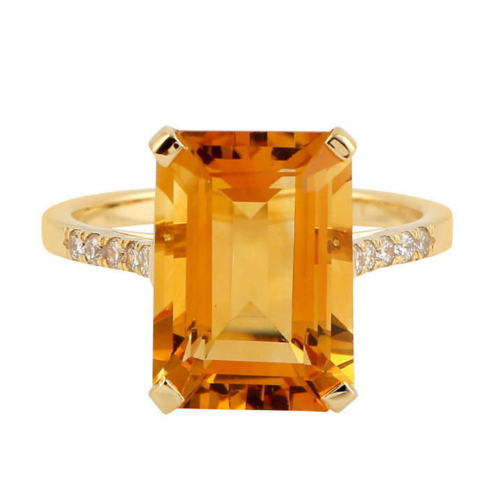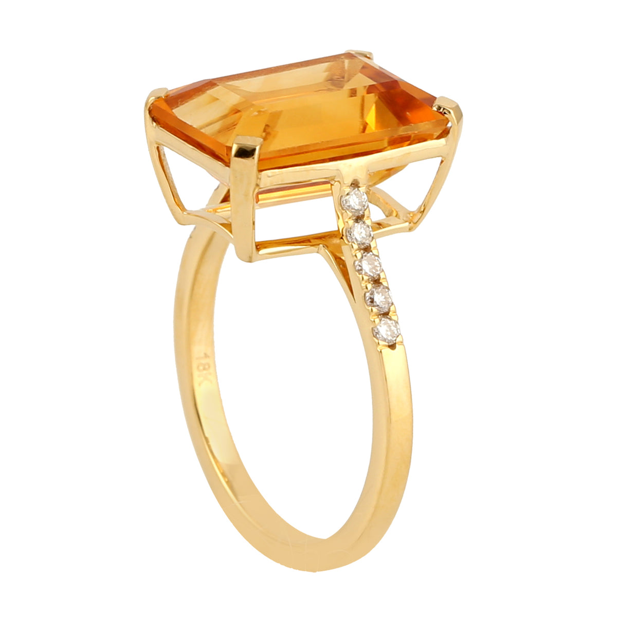 This Ring is handmade in 18k Yellow Gold, and Diamond 0.18 cts, Citrine 6.81 cts