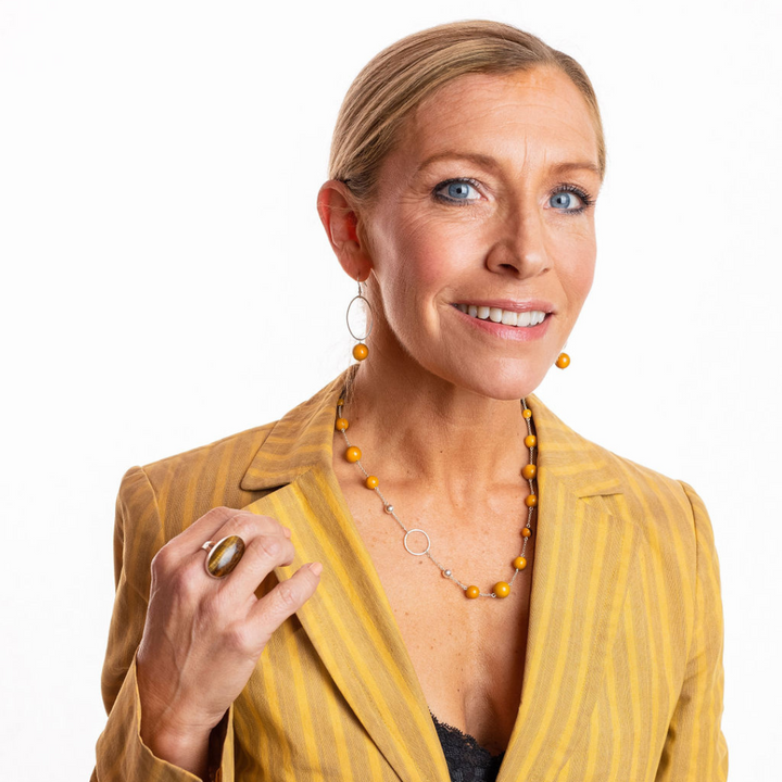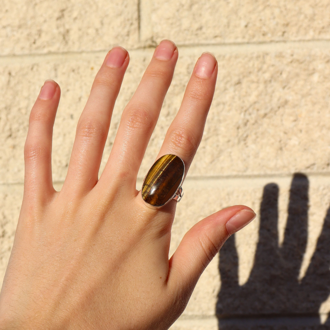 Crafted from an oval cut of the Tiger's Eye stone and paired with a sterling silver band, this is a classic ring with a modern twist. The Tiger's Eye stone has a unique mix of brown and yellow tones with a silky lustre.