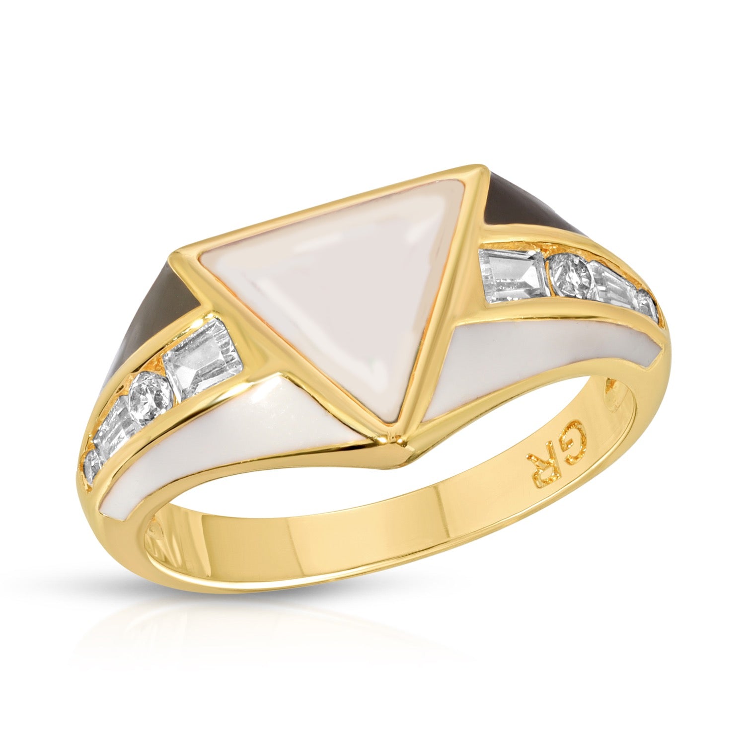 A Pink Floyd, 70's inspired ring! Grey and White colored enamel, with clear round/baguette CZs.