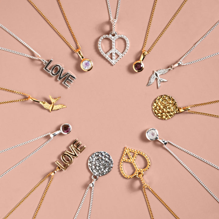 This Swallow In Flight Gold Necklace by Charlotte’s Web Jewellery embodies freedom, hope, and new beginnings. Handmade to capture the elegance of the swallow in motion, this pendant becomes a symbolic talisman and a stunning centerpiece. Offered with a diamond-cut curb chain and available for personalisation with birthstone charms, it’s a deeply meaningful piece that blends artisanal design with spiritual storytelling.