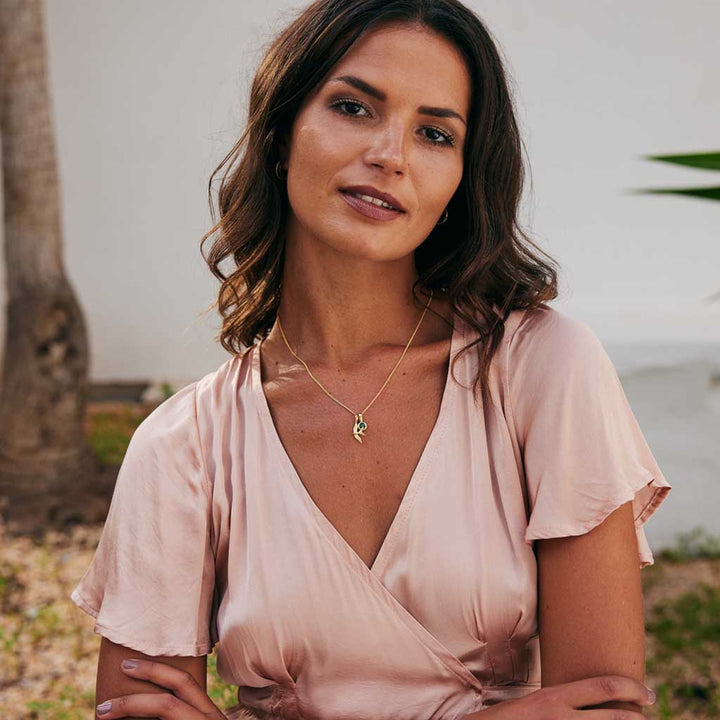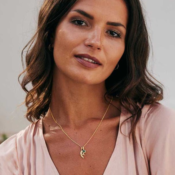 Crafted in recycled brass with 24ct gold plating. Pendant hangs from a diamond-cut curb chain adjustable from 16" to 18". Also available in sterling silver.