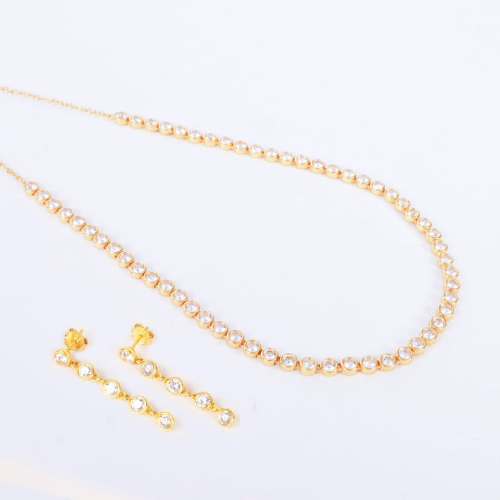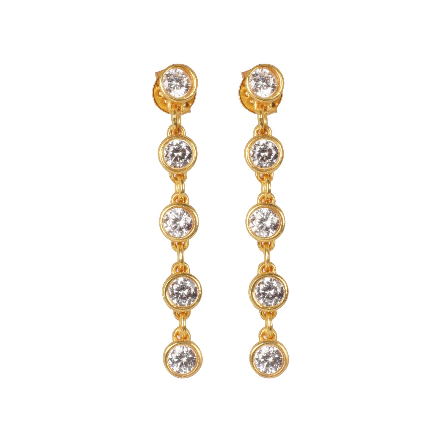 These Crystal Tennis Earrings by Lila Rasa are designed to bring a feel-good sparkle to any occasion. Expertly crafted in gold, they feature a graceful line of brilliant-cut zirconia stones that offer a radiant and sophisticated finish. These lightweight and versatile drop stud earrings transition seamlessly from day to night, effortlessly elevating your outfit with their elegance and shimmer. For a more striking appearance, they can be paired with a matching necklace, ensuring you shine no matter the occasion.