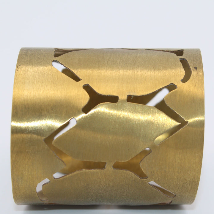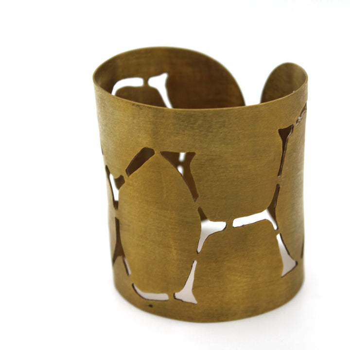 This cuff is hand-crafted from 100% recycled brass. To clean, use a 50/50 solution of white vinegar and water, or a mix of lemon and water for stubborn marks.