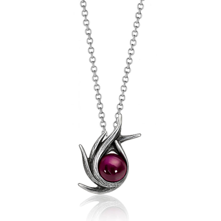 This Sterling Silver Poseidonia Necklace by Unaloe channels the strength and majesty of the sea god. A rich ruby centerpiece, symbolizing passion and vitality, is encircled by silver motifs that recall rippling waves and tridents. Its design embodies both power and refinement, making it a statement piece of timeless elegance. Unaloe’s Italian craftsmanship and artisanal antiquing techniques imbue this necklace with authenticity, while its marine inspiration adds a captivating depth to any collection.