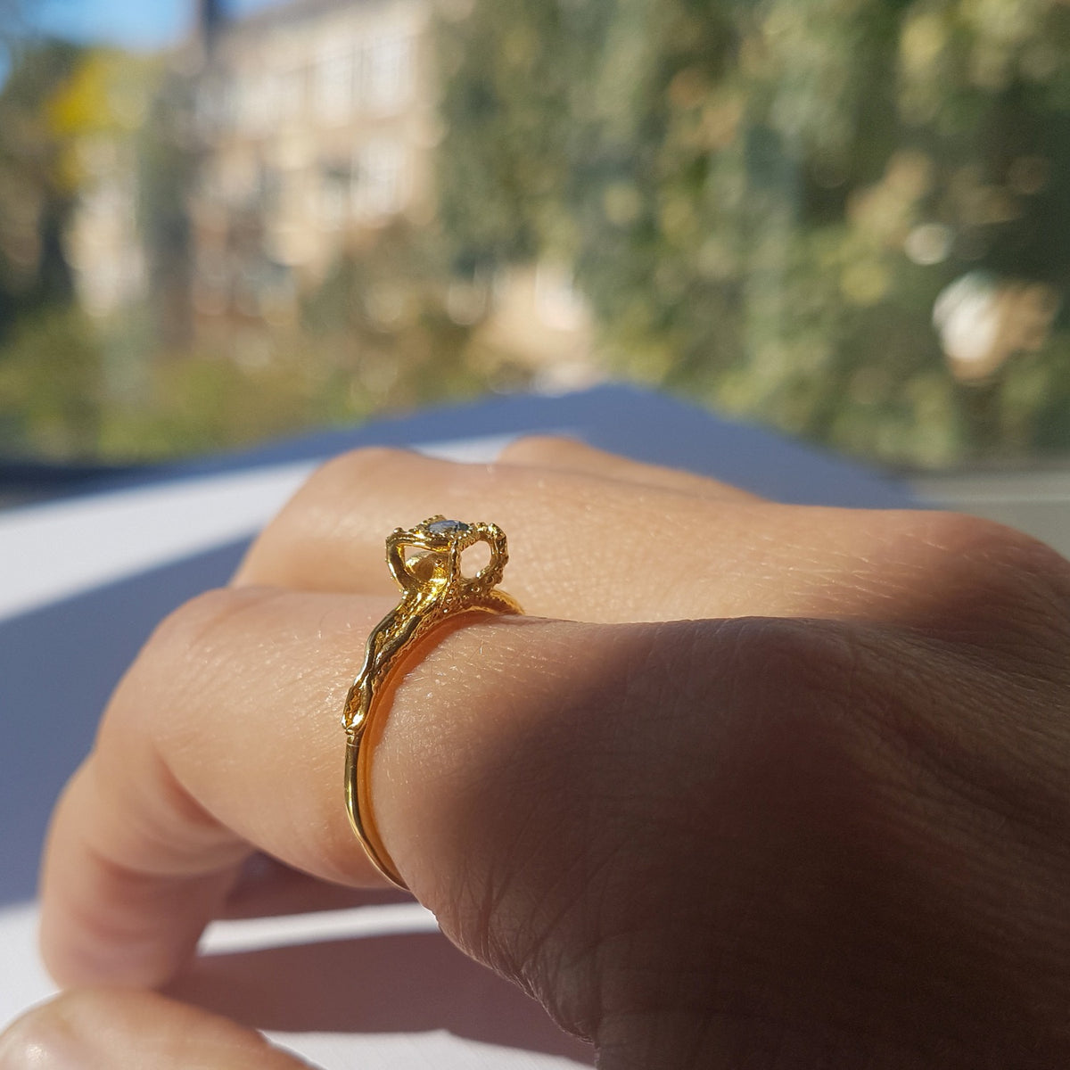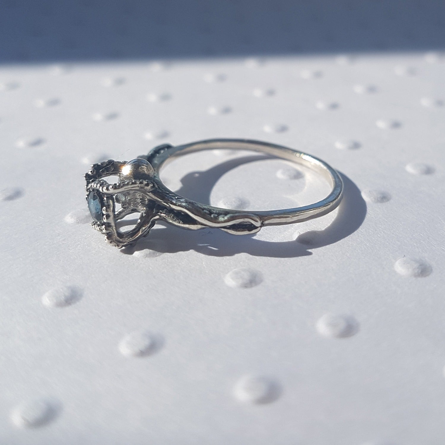 Inspired by Sir David Attenborough’s The Blue Planet documentary – I love how inquisitive the octopus is, which is why I designed this ring as though the little octopus is holding onto a London blue Topaz gemstone, balancing it above his head so he can get a closer look at this gorgeous, sea coloured gemstone treasure. 100% handmade in Hatton Garden, London from recycled silver, which is then oxidised and polished to bring out the detailing.