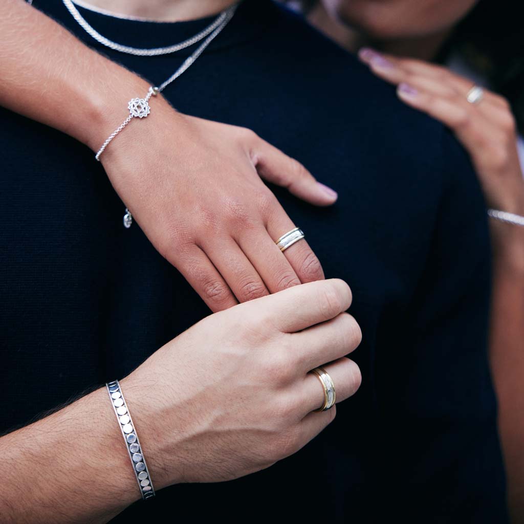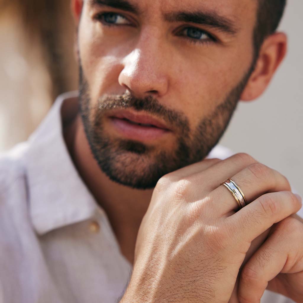 This Daydreamer Unisex Silver Spinning Ring by Charlotte’s Web Jewellery is both stylish and functional. Inspired by Tibetan prayer wheels, its hammered band can be spun to calm the mind and ease anxiety. Versatile and unisex, it’s a meaningful piece for mindfulness, doubling as a modern wedding band or everyday fidget ring.