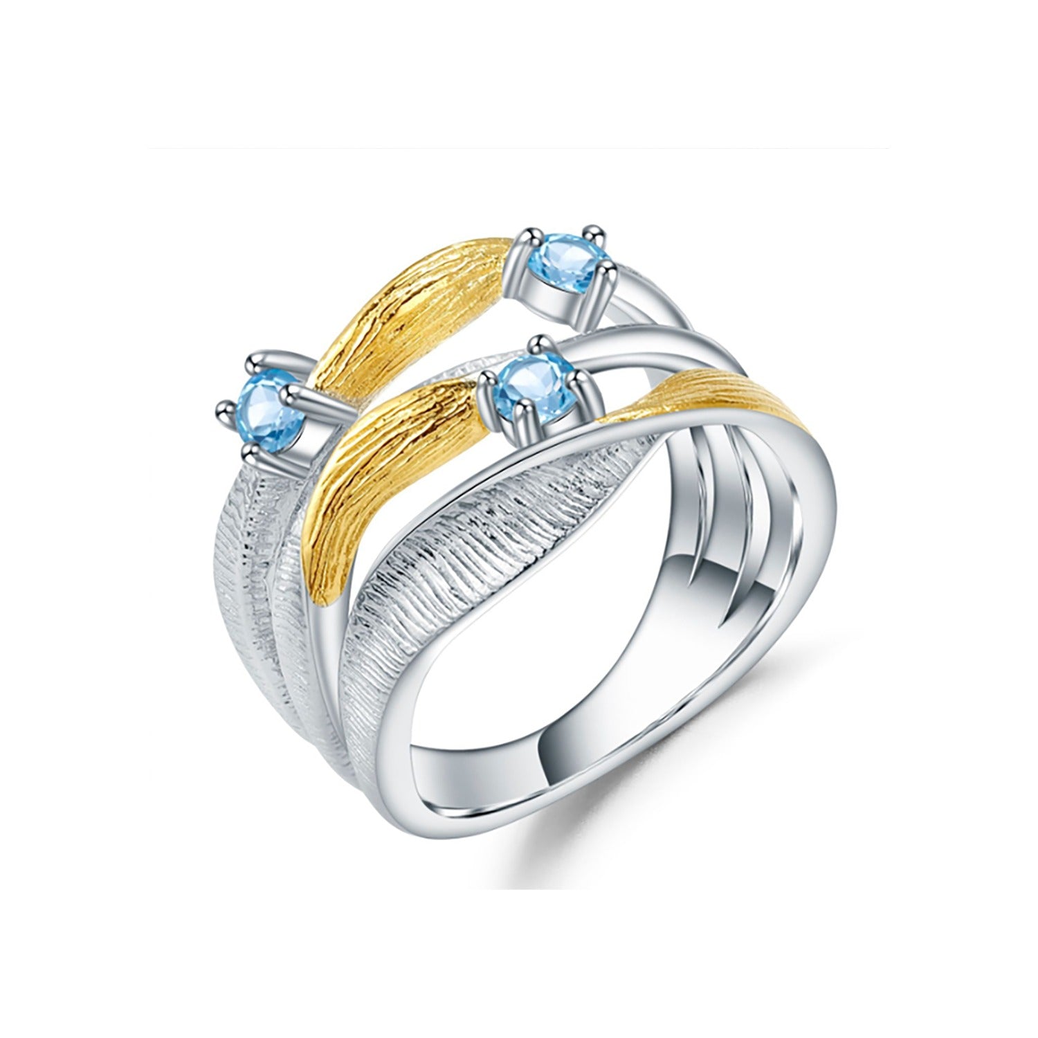 Clatto Blue Topaz Wavy Sterling Silver Ring Band