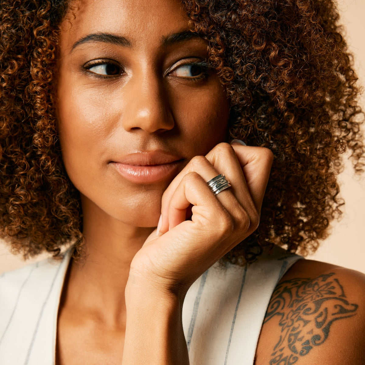 The Karma Abundance Silver Spinning Ring by Charlotte's Web Jewellery is an ethically created accessory inspired by ancient spiritual principles. This ring is handcrafted in recycled silver and is designed to be spun throughout the day to help de-stress the mind and manifest good fortune.