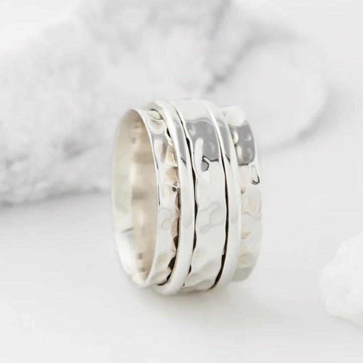 This spinning ring is made from recycled silver. It is also available in mixed metal.