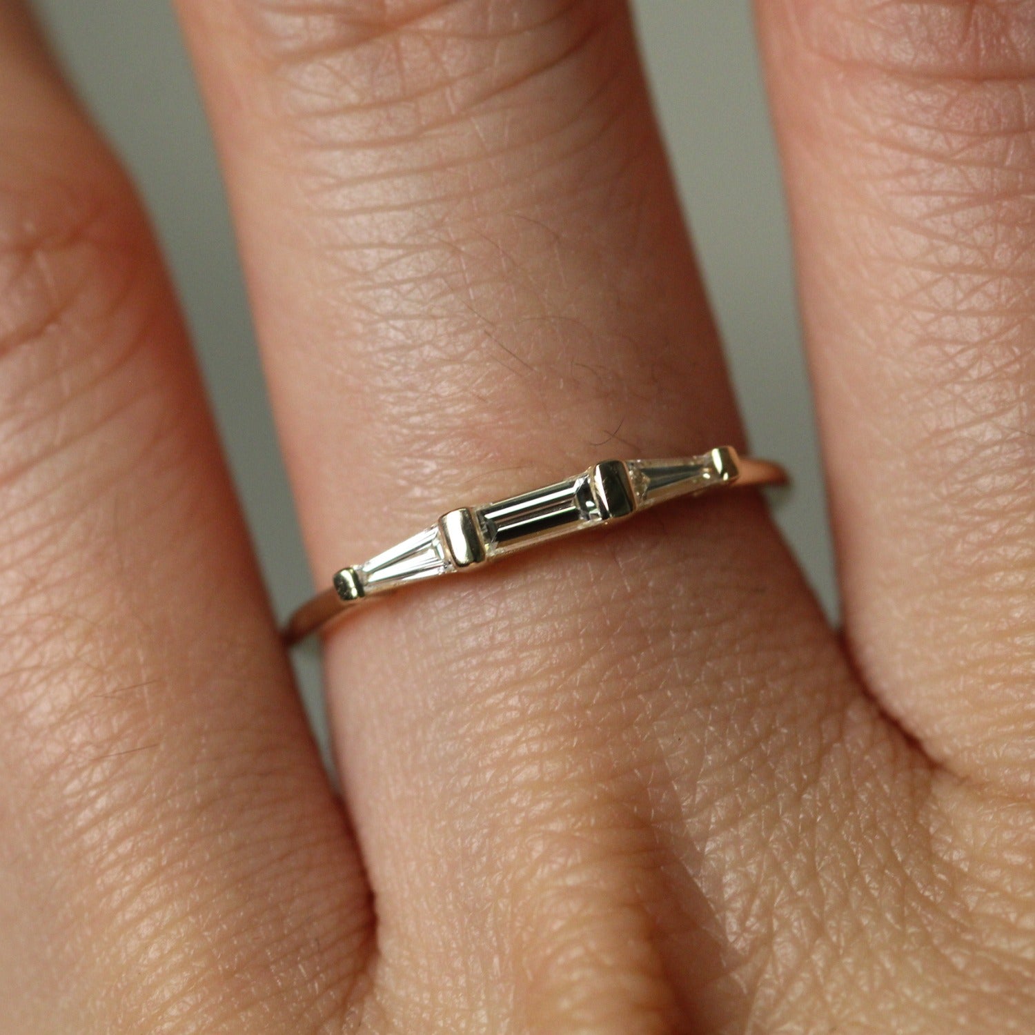 Modern Tapered Baguette Diamond Gold Ring