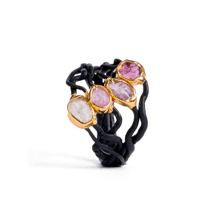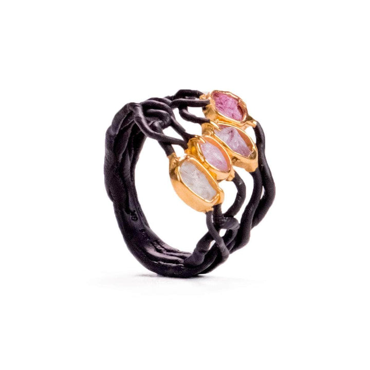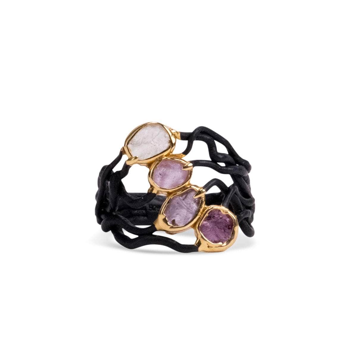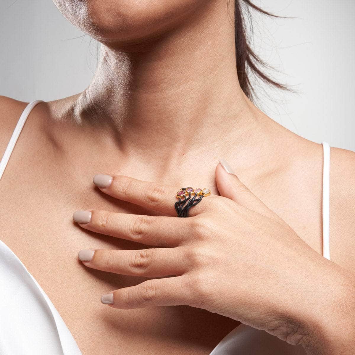 Silver 925. Sapphire, Ruby, Spinel Rough. Black Anthracite Plating, 18K Gold Plating.