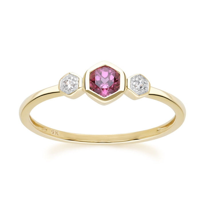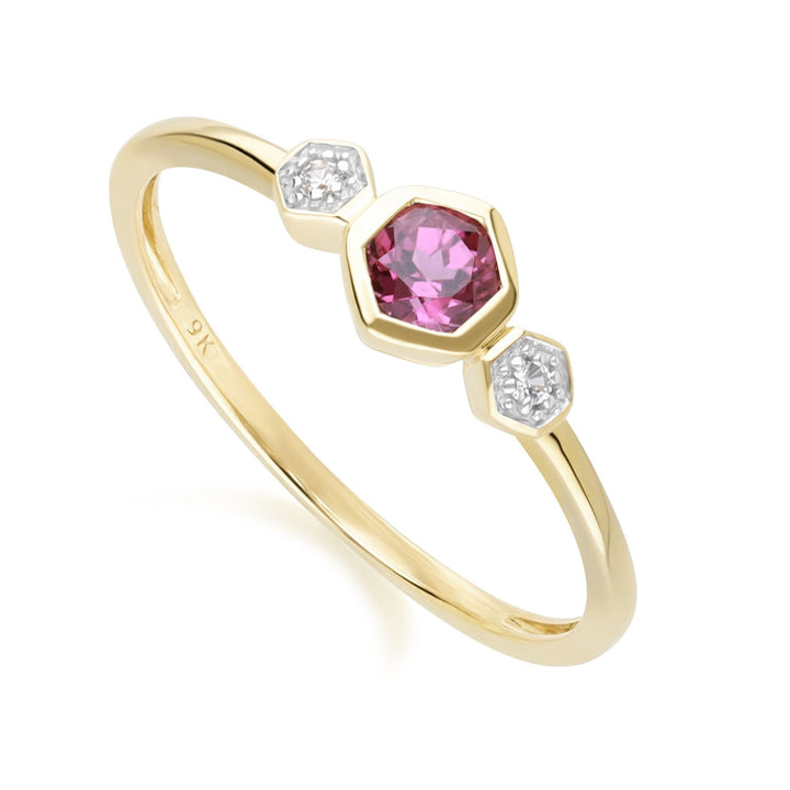 Geometric Round Rhodolite Sapphire Ring In Yellow Gold