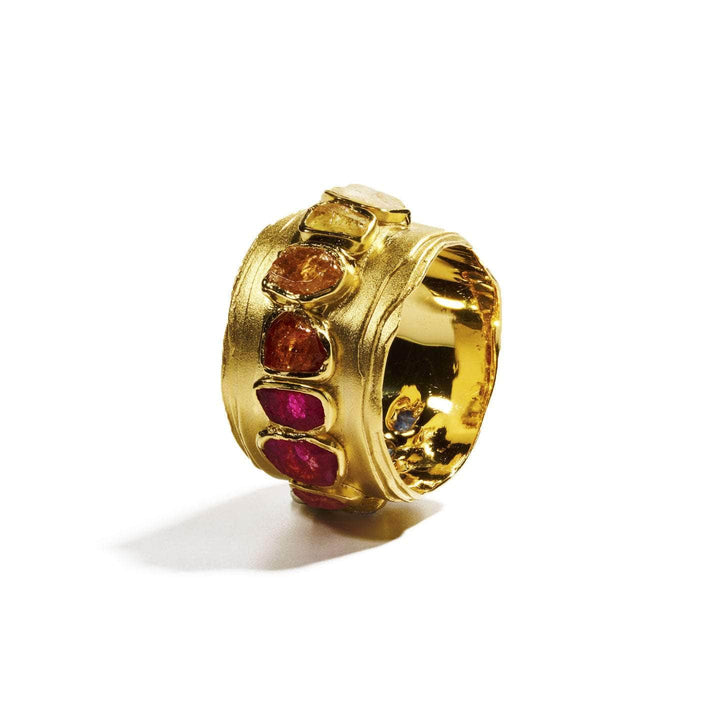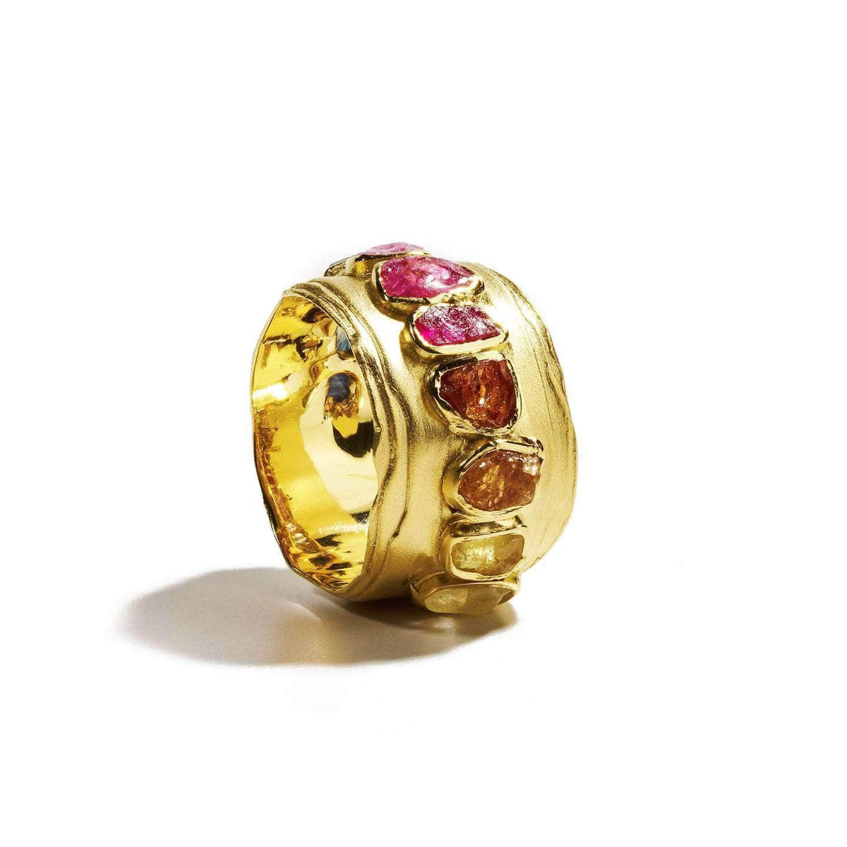 Layered silver ring with natural Raw Sapphire, Chrysoberyl, and Garnet crystals - just the way they were mined from the Earth, unaltered, unspoiled, virgin. This design is handmade and individually crafted, so it might look slightly different from the picture. There will never be two completely identical pieces, so yours will always have one of a kind.