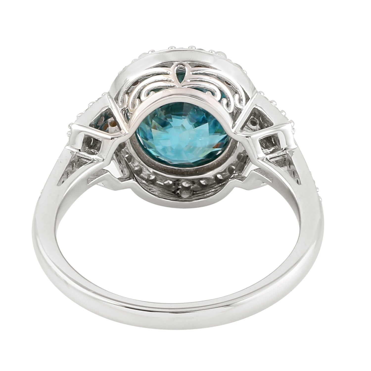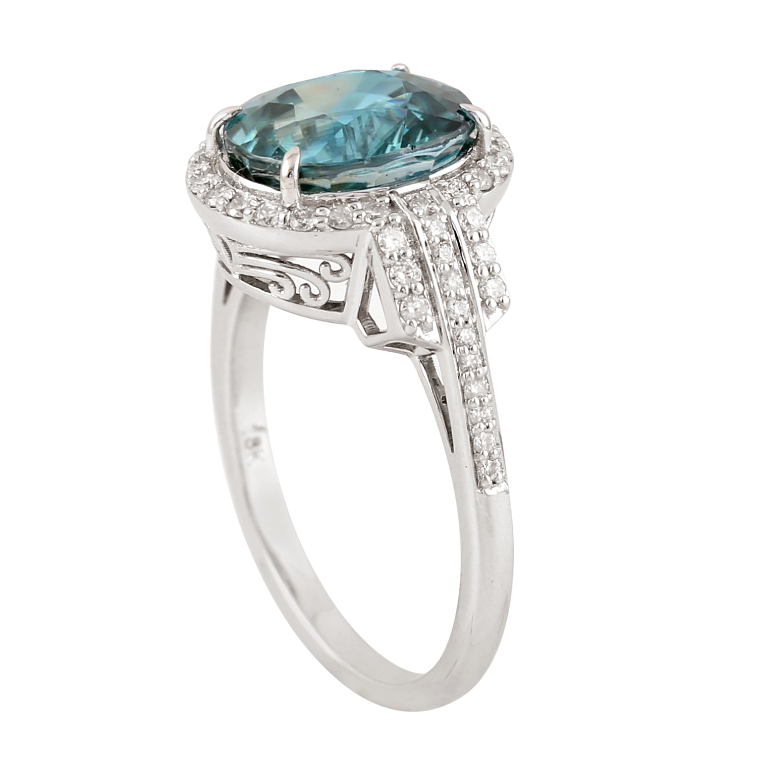Natural Diamond Blue Zircon In 18k White Gold Cocktail Ring Handmade