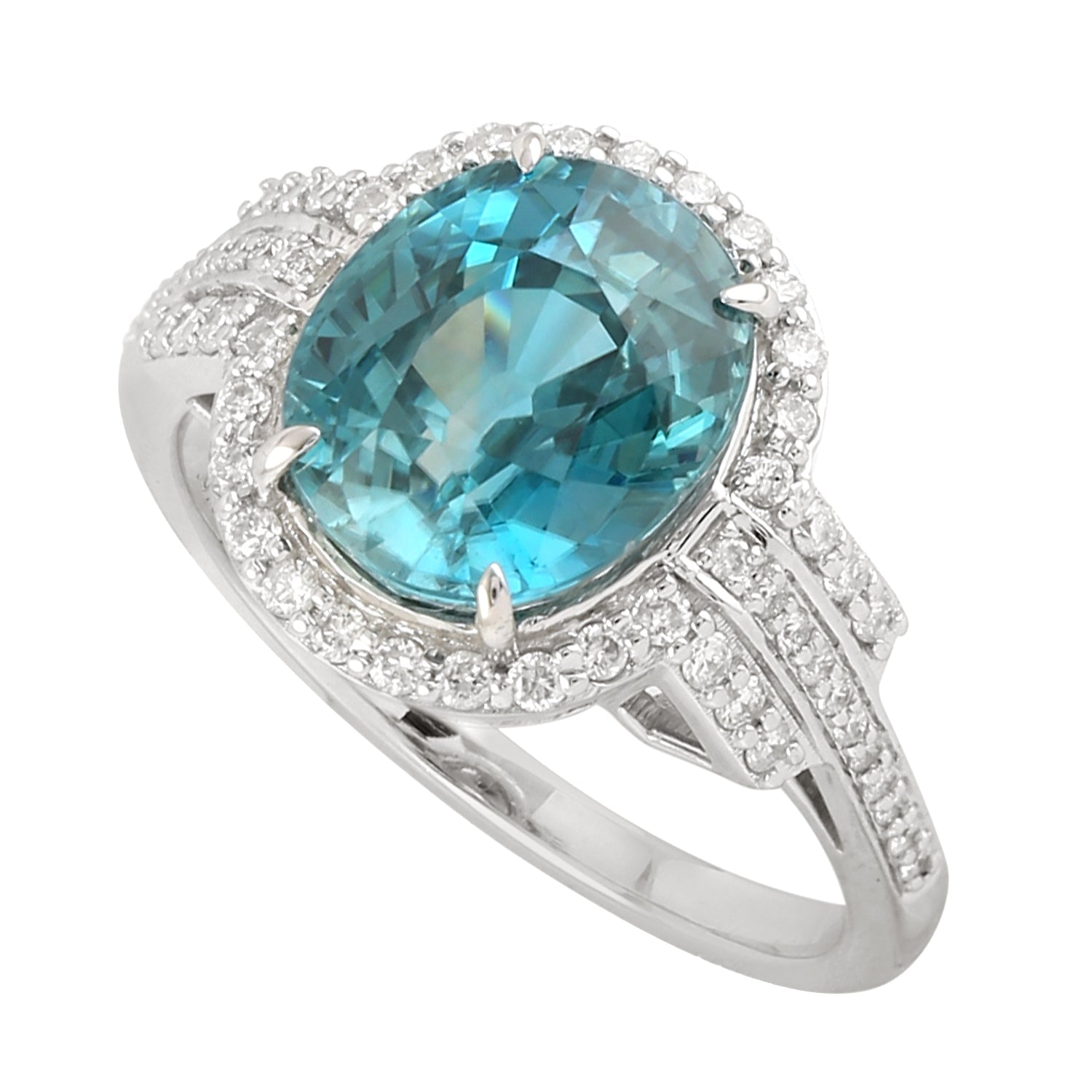 This Ring is handmade in 18k White Gold, and Diamond: 0.37 cts, Blue Zircon: 5.93 cts