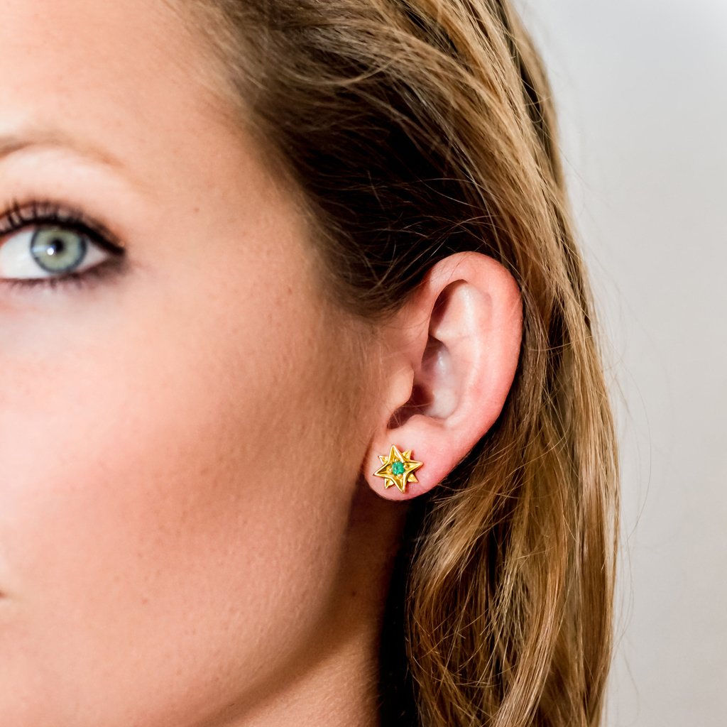 Guiding North Star Gold Vermeil Stud Earrings - Emerald