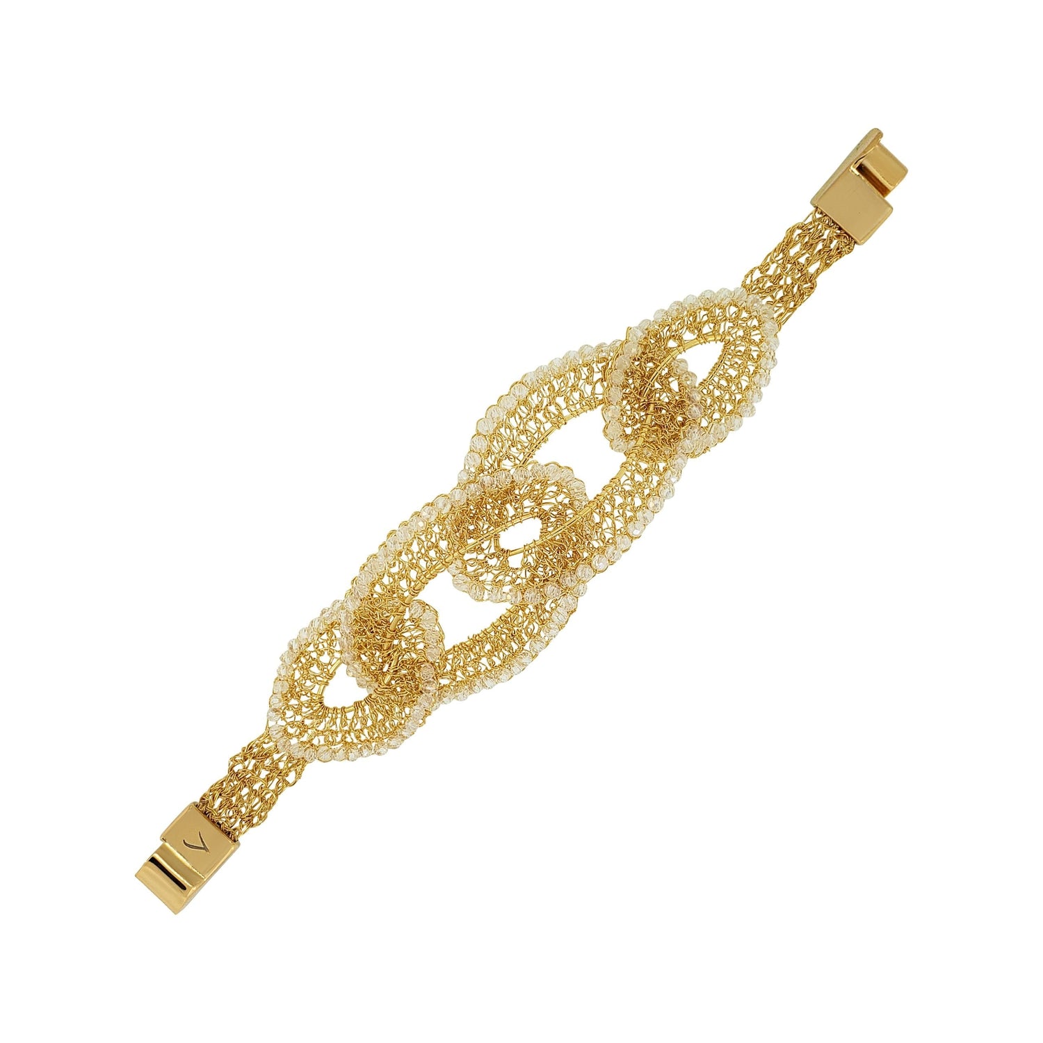 Clear & Gold Minerva Handmade Crochet Bracelet