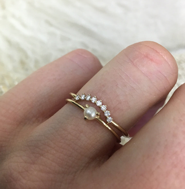 Our most popular diamond arc to create any delicate stack, this gold stacking ring will compliment almost any of our pieces. The delicate arch of diamonds adds just the right amount of sparkle to any stack without overpowering and is a staple in our collection.