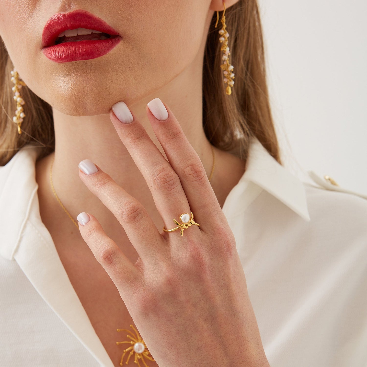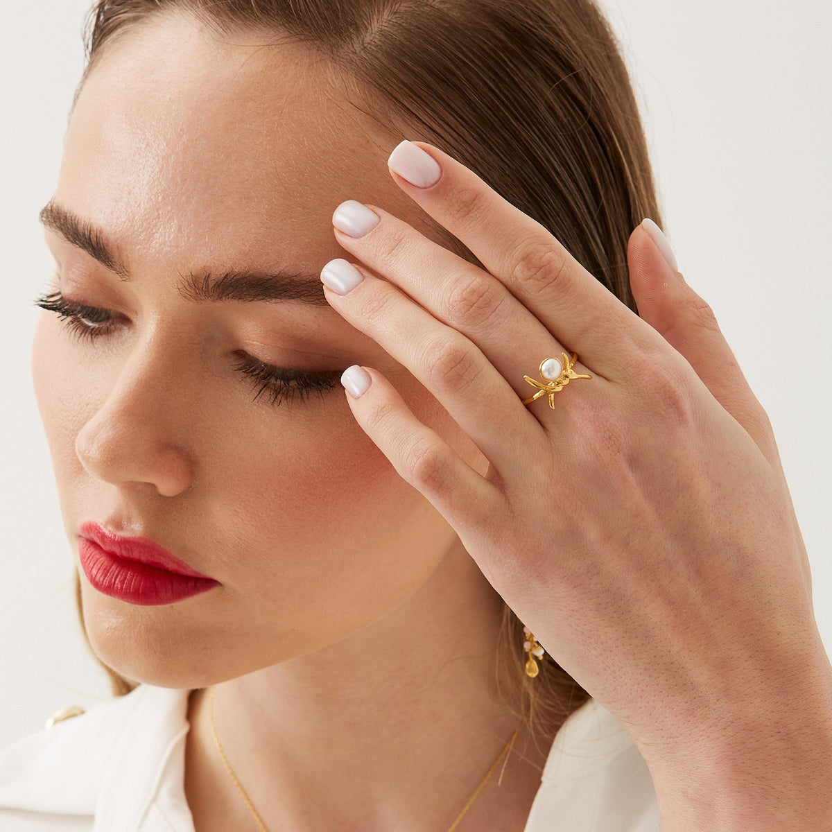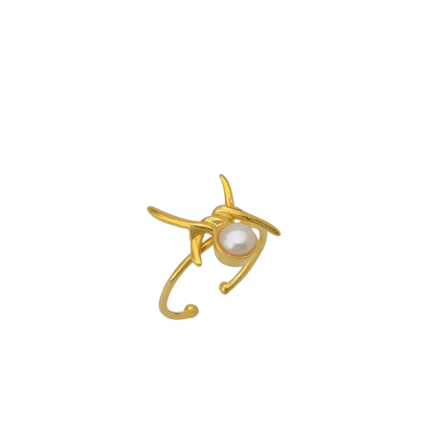Add an elegant edge to any outfit with this gorgeous Barbed Wire Natural Pearl Ring that is sure to bewitch the attention of everyone. The ring is handmade in a 925 recycled sterling silver material that is high-quality, lightweight, durable, and brilliantly polished. Owing to its design, it highlights a barbed wire design accentuated with a lustrous natural pearl at the center that looks unique when you style it. This stunning ring comes in radiant silver and gold tones that will go pretty well with your other accessories. Pair it solo or style it with our pearl drop earrings and necklaces for a whimsical statement look.