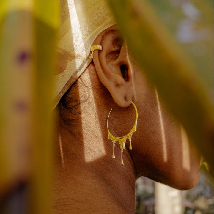 Dripping Circular M-2 Gold Vermeil Hoop Earrings