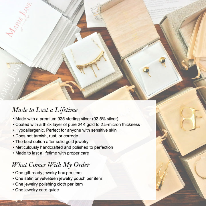 Handcrafted in sterling silver with thick 24k yellow gold vermeil plating. Sold as a pair. Includes both butterfly and silicone earring backs. Hypoallergenic and tarnish-resistant.