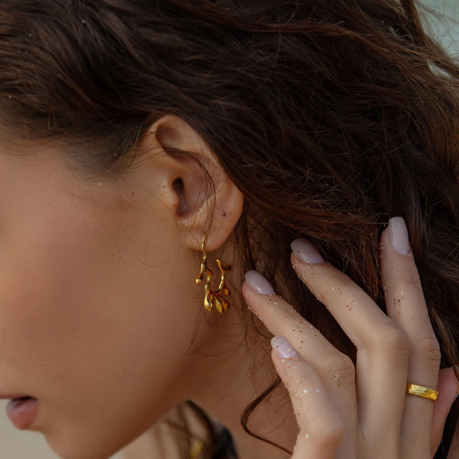 These Melting And Dripping Irregular Gold Hoop Earrings by Mejoma are a stunning and artistic statement piece that redefines the classic hoop. Handcrafted with a unique "melting and dripping" design, these irregular hoops create a fluid and sculptural look that is sure to turn heads. Made with high-quality silver, they are both elegant and durable, perfect for elevating your style with a one-of-a-kind accessory that channels a creative and modern aesthetic.