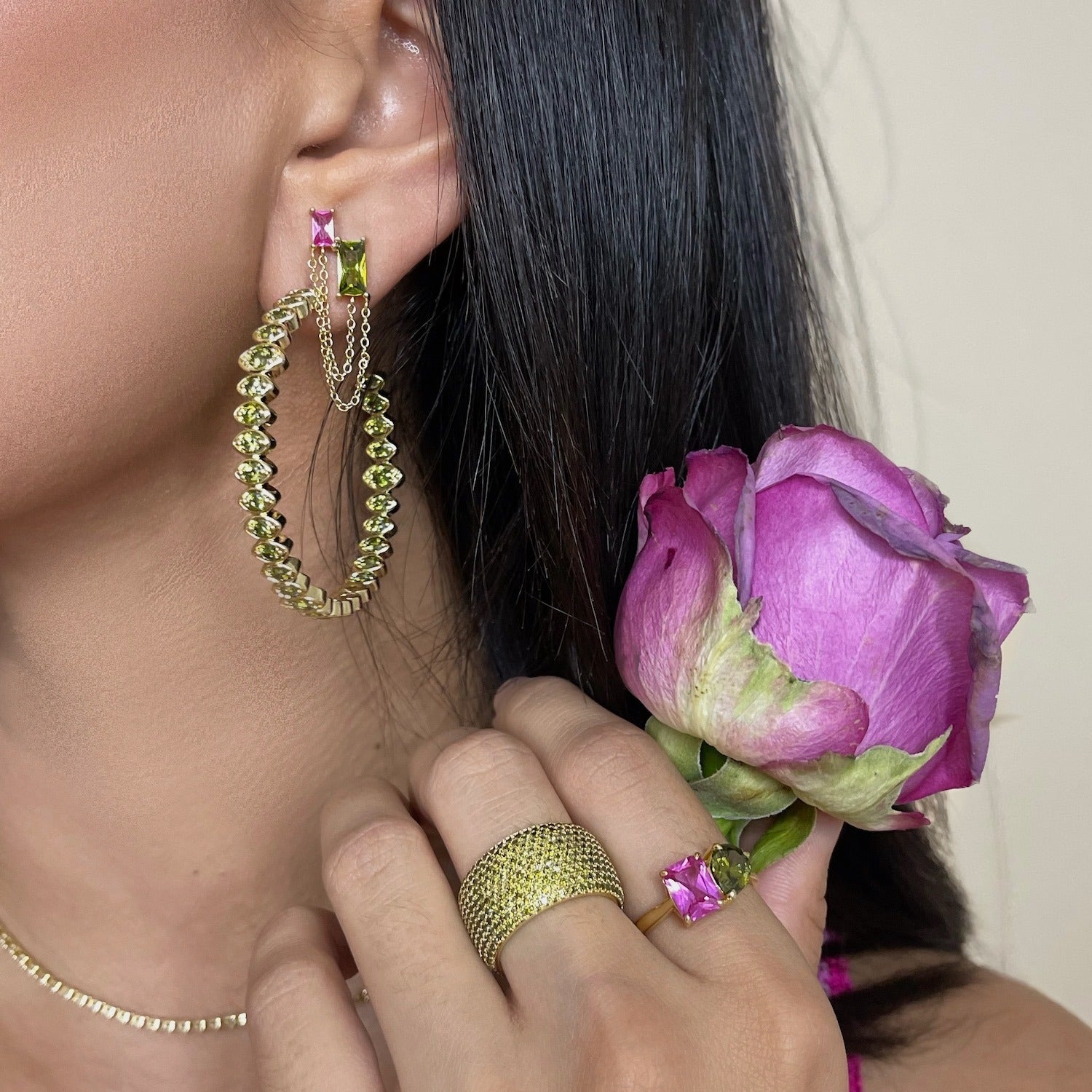 The Perfect Pair Ring showcases a captivating pink peridot gemstone set in a delicate band. Crafted with precision, this ring combines elegance and uniqueness, making it a delightful addition to any jewelry collection.