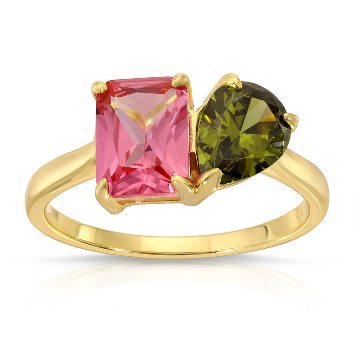 14K gold vermeil ring in mixed pink and peridot quartz.