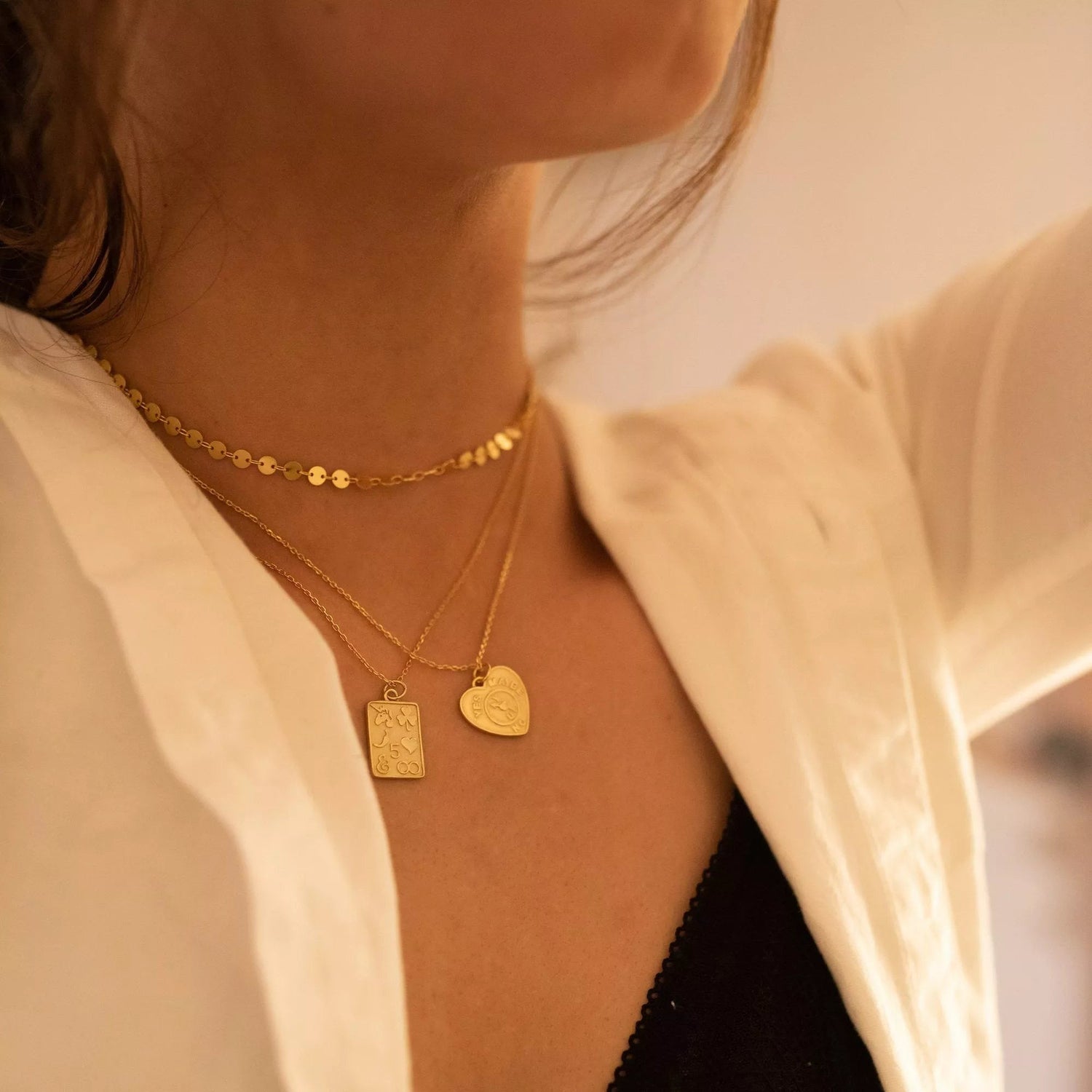 This necklace is crafted from solid sterling silver with genuine 18-karat gold plating. The chain measures 44cm and includes an extender.