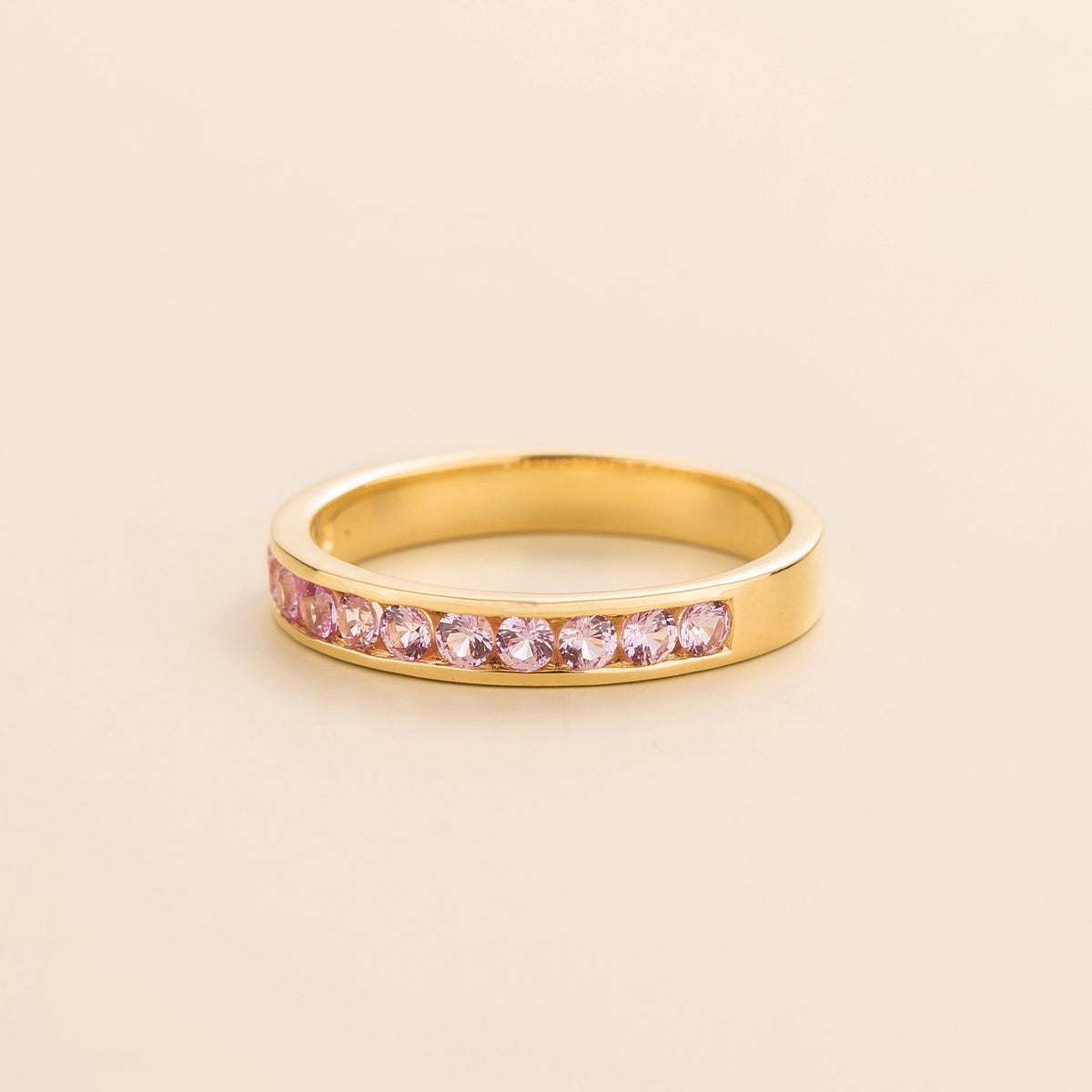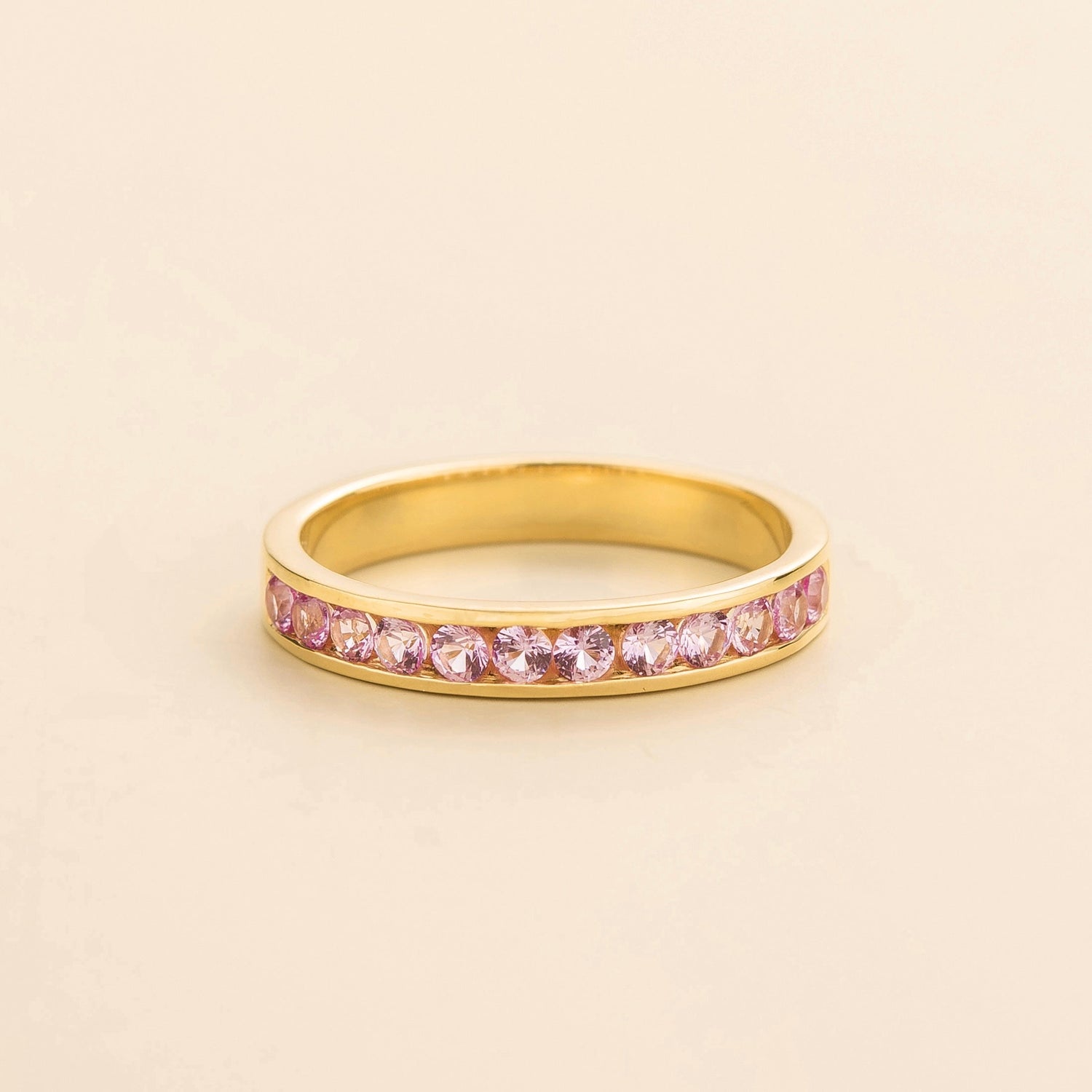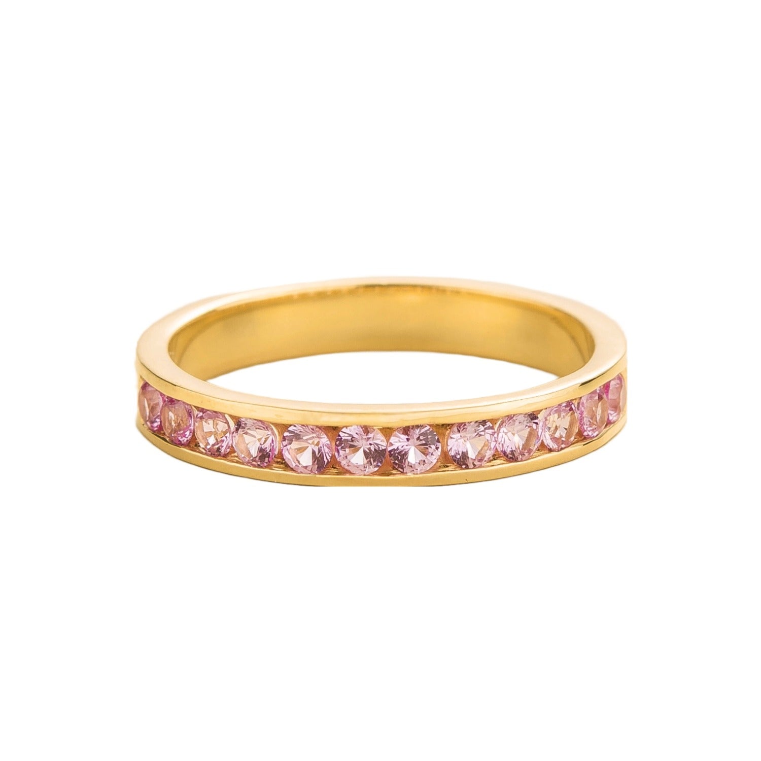 Margo ring in 18K gold vermeil set with ~0.6 carats Pink sapphire (13 of 2mm round cut stones). Options available in 9K, 14K and 18K gold.