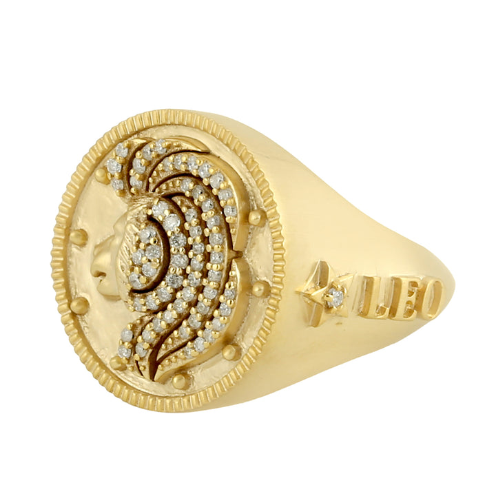 Natural Diamond Handmade 14k Solid Gold Leo Zodiac Ring