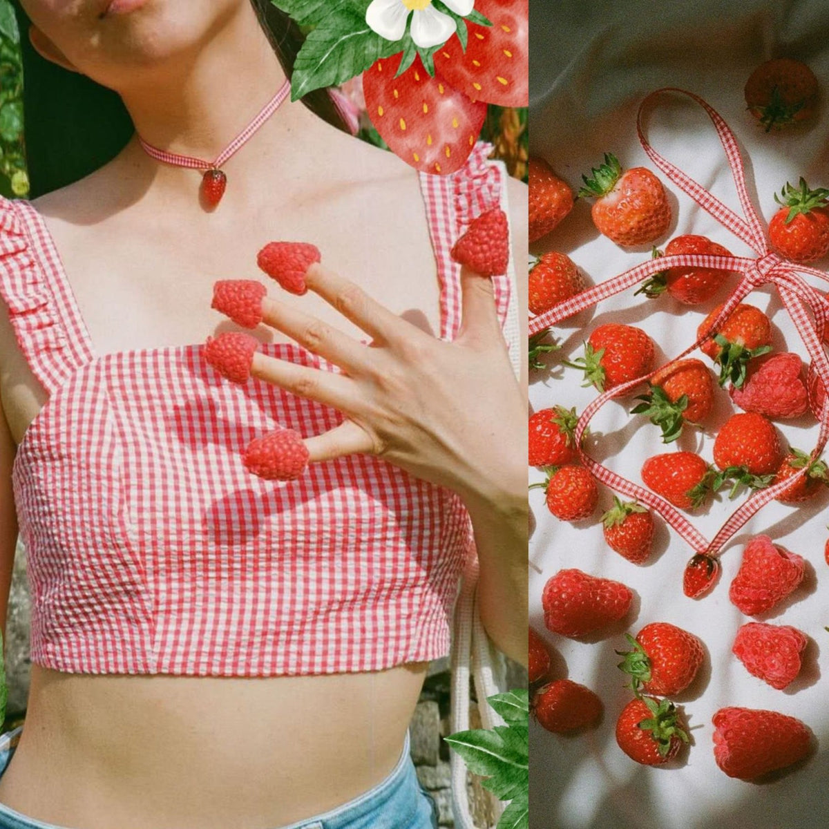 Strawberry Fields Red Gingham Ribbon Choker