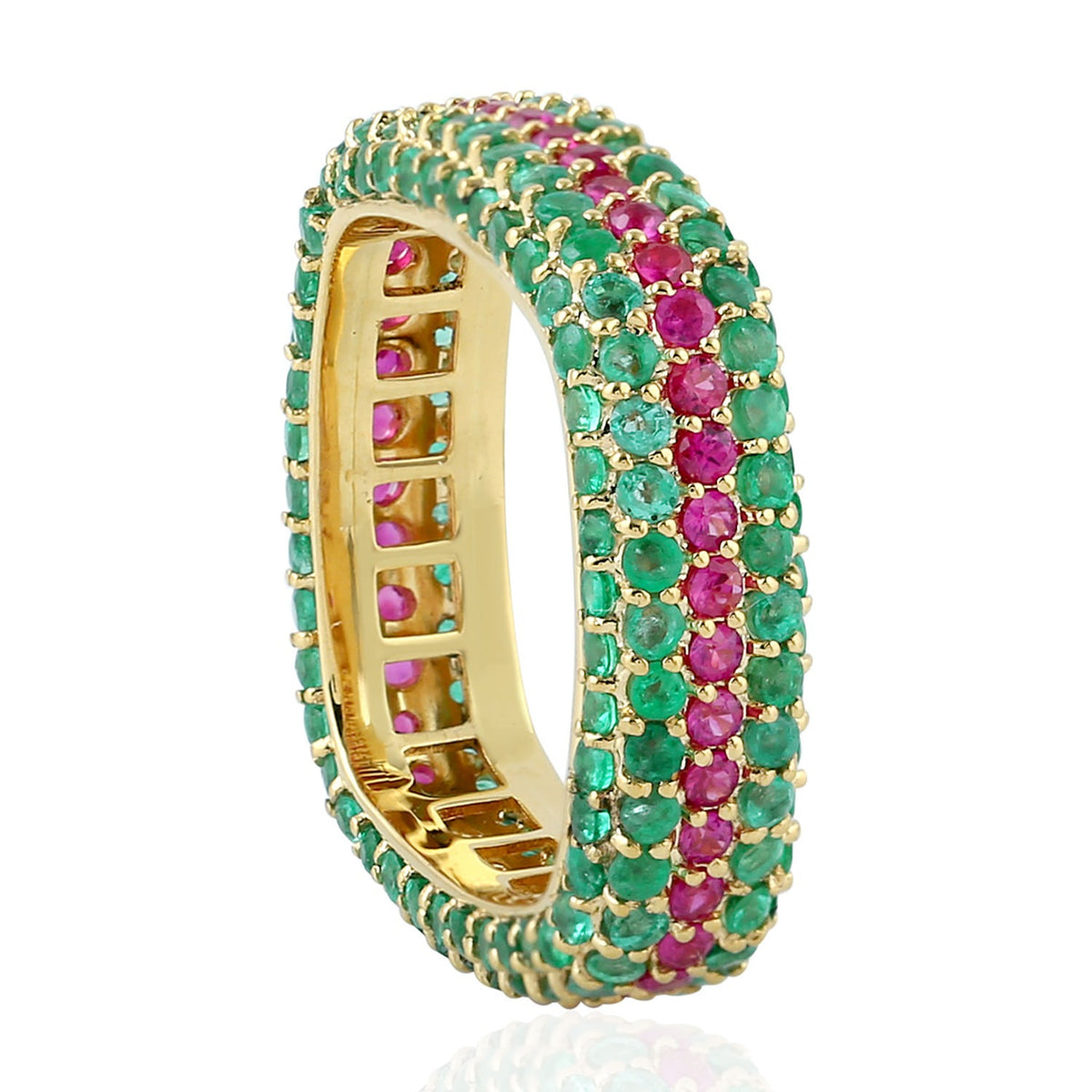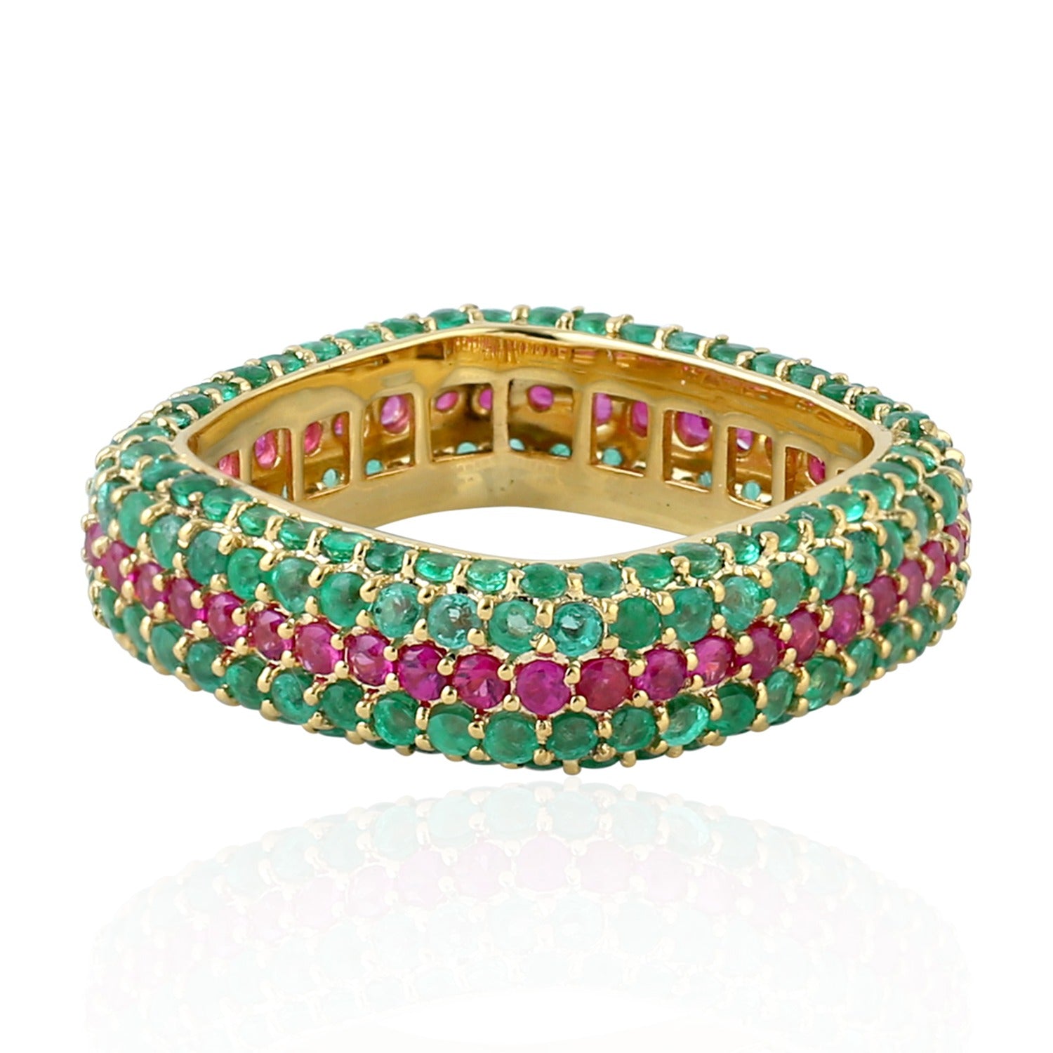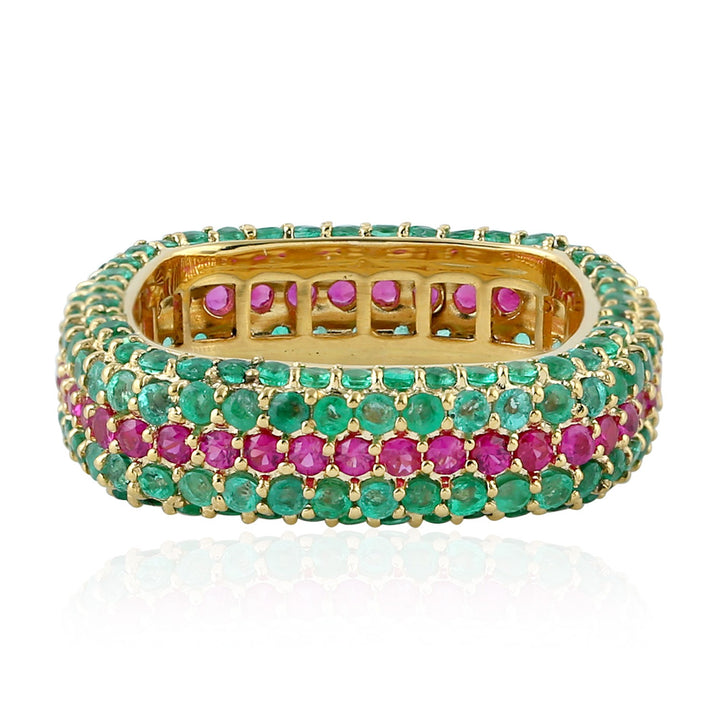 Solid Yellow Gold Natural Emerald Ruby Band Ring Handmade Jewelry
