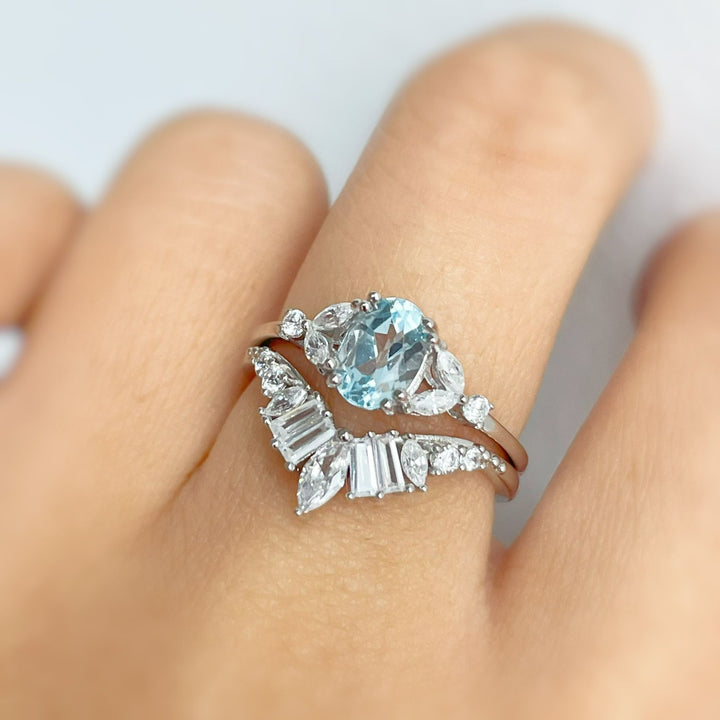 Life is a stellar opportunity to realize who you are and improve on yourself. Therefore, manifest with the Stellar Aquamarine Ring and let this gorgeous piece encourage you to constantly learn new things, try new approaches, and strive to be your true self. This ring features an oval-cut aquamarine at the center with petite white topaz cleaving towards the gemstone. A dainty piece you should have in your trinket.