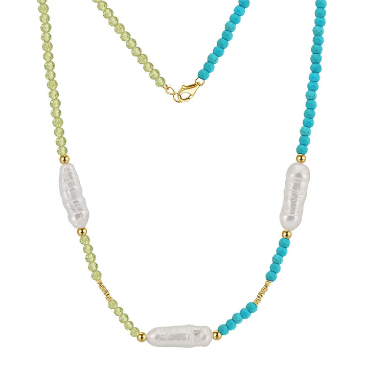 Azurae Peridot, Pearl & Turquoise Beaded Necklace